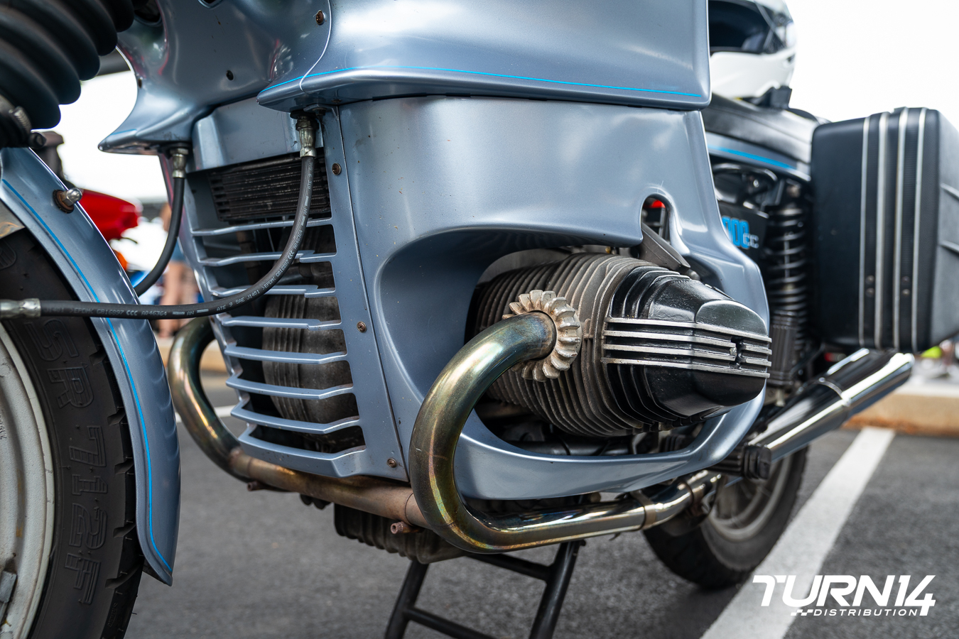 A beautifully preserved BMW R100RS appeared at Turn 14 Distribution’s Motorcycle Alley, turning heads with its classic styling and unmistakable boxer engine charm. As one of the standout vintage entries, the R100RS showcased BMW’s engineering heritage with its sleek fairing, air-cooled 980cc engine, and timeless design. The bike’s presence added a touch of old-school sophistication to an otherwise modern lineup, offering a nostalgic nod to the golden era of sport-touring motorcycles.