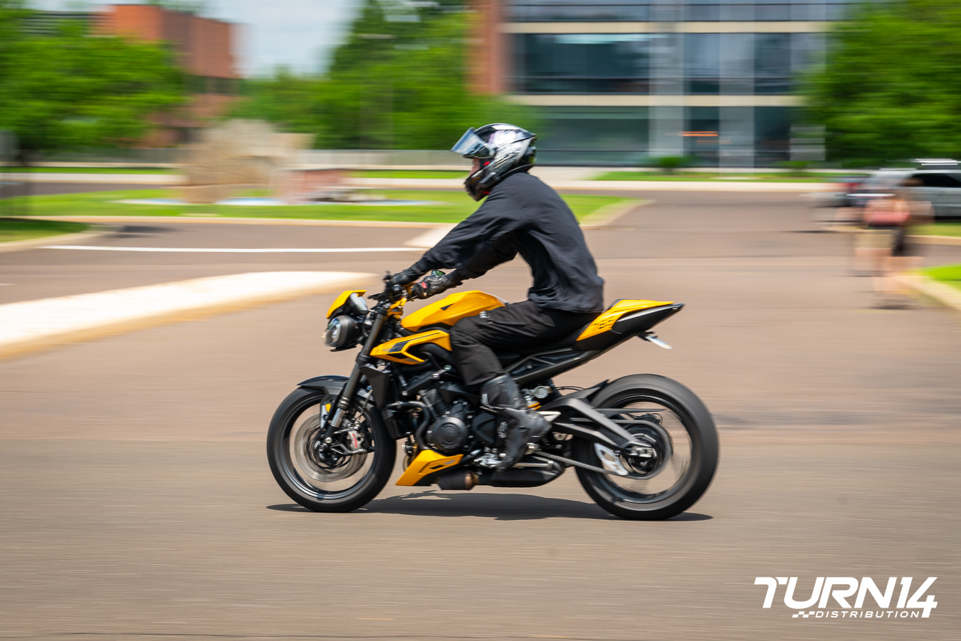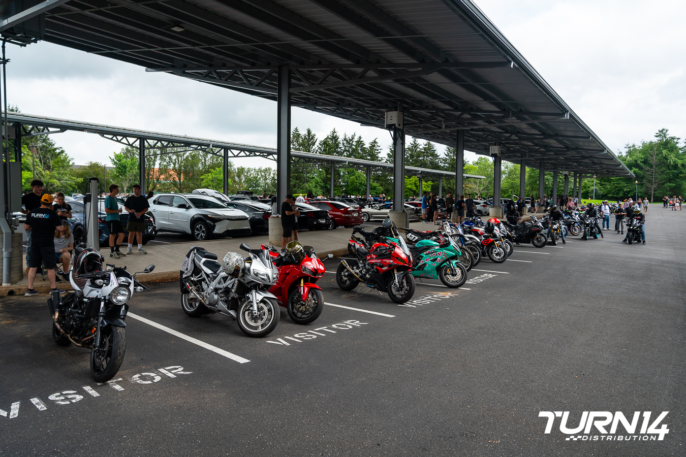 What began as a cloudy day with a chance of rain quickly cleared, resulting in ideal weather that brought out an impressive turnout from the local motorcycle community. Motorcycle Alley, presented by Continental Tire and Dainese, was filled with an eclectic mix of bikes showcasing today’s riders’ depth and diversity. Although Turn 14 Distribution entered the powersports space less than two years ago, its rapid growth was clearly on display. It’s rare to see such a wide-ranging collection in one place, from Triumph café racers and Yamaha cruisers to Ducati sportbikes, Harley-Davidson baggers, Kawasaki streetfighters, and various custom builds.