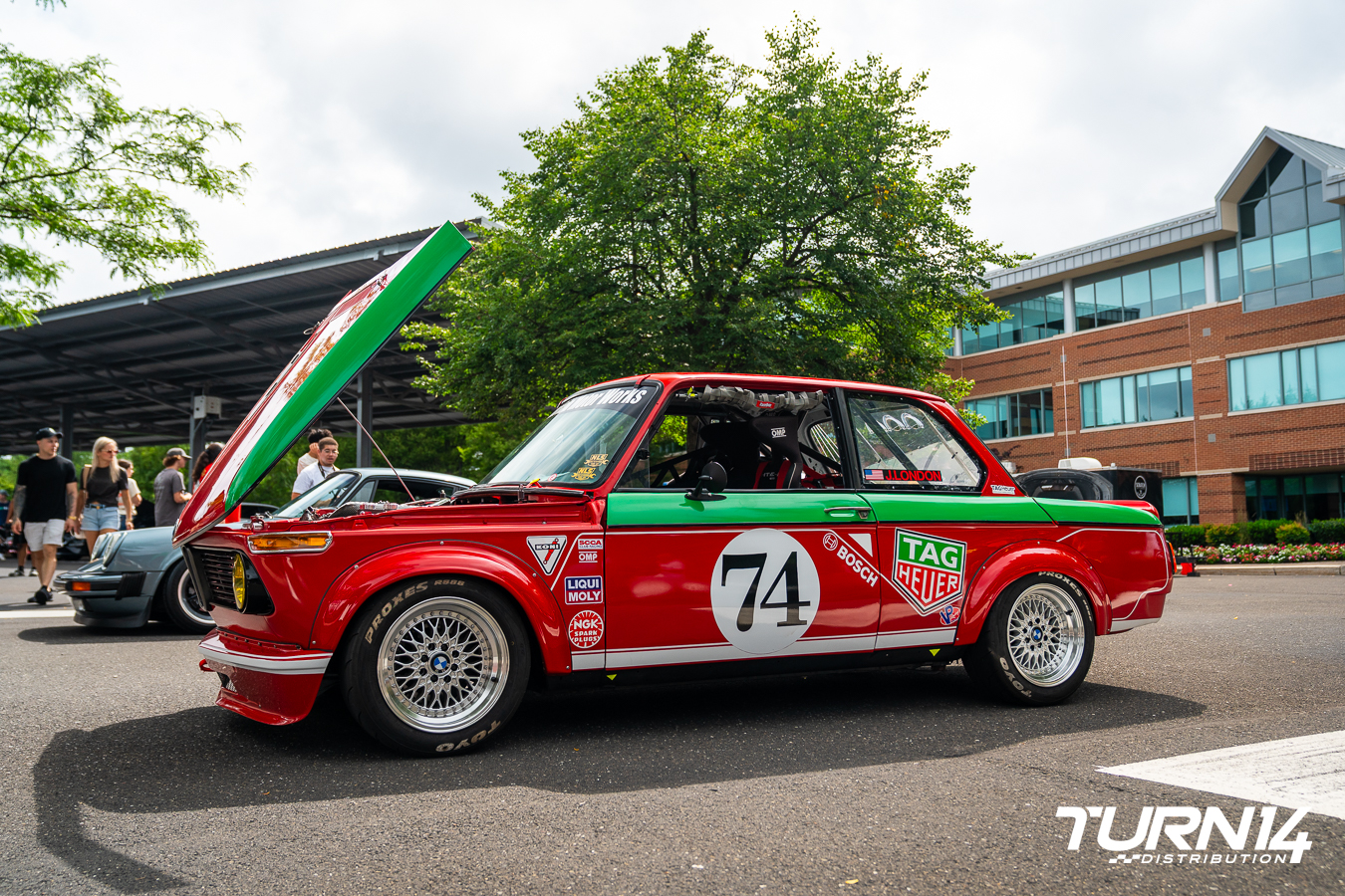 Josh London’s 1974 BMW 2002 stood out at the event for its striking TAG Heuer livery and story. Originally purchased as a rusted-out shell from Bring a Trailer, Josh spent the last three years completing a full frame-off restoration in his garage. Built for vintage road racing, track days, and hill climb events, the car features a rare modified Getrag 245 dogleg transmission and a limited-slip differential. Custom Ground Control coilovers, boxed suspension components for added rigidity, seam welding, and a full roll cage round out the performance upgrades. The TAG Heuer-inspired livery pays tribute to his passion for luxury watches and TAG’s motorsport legacy, making this build as personal as it is track-ready.