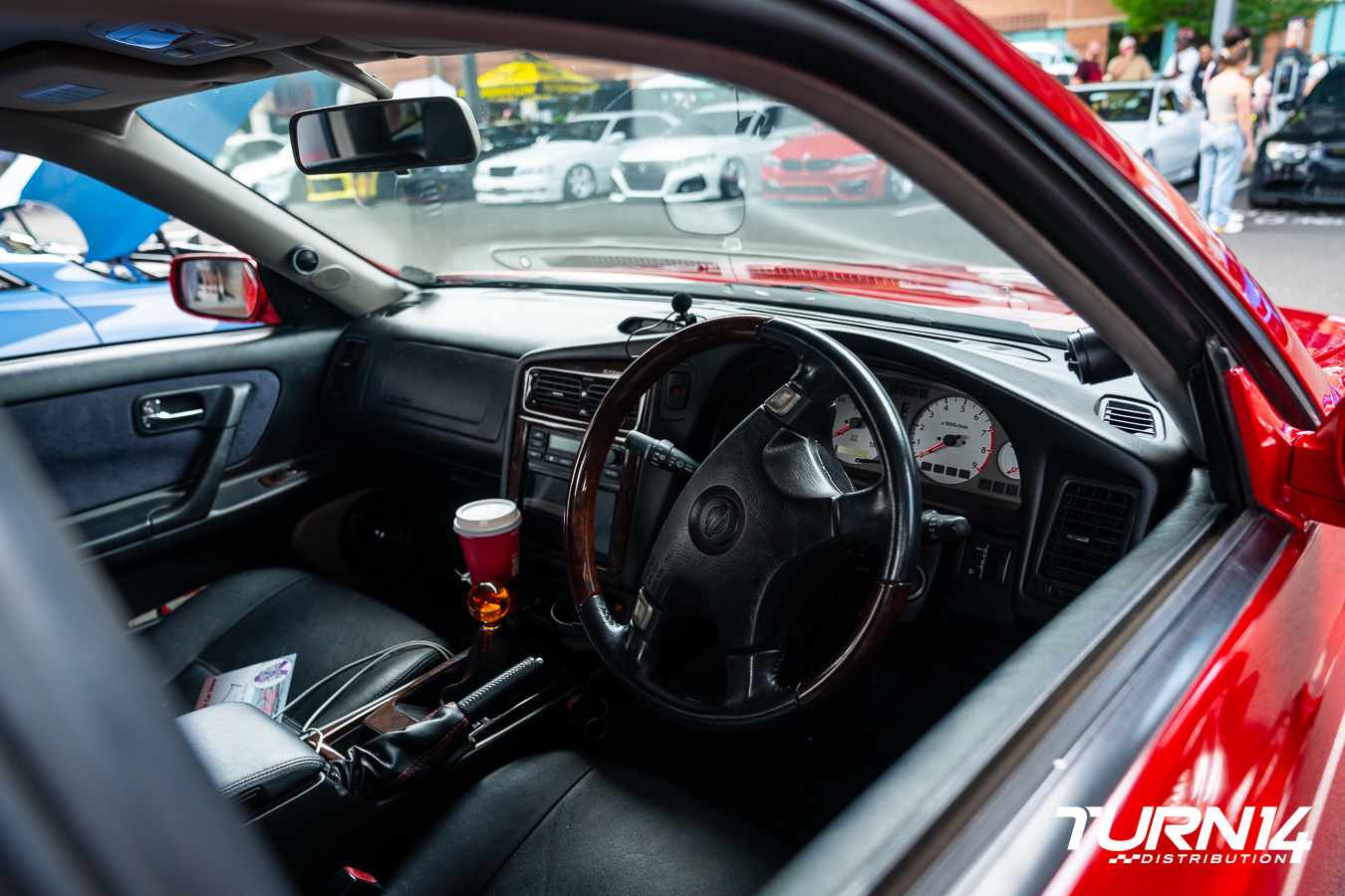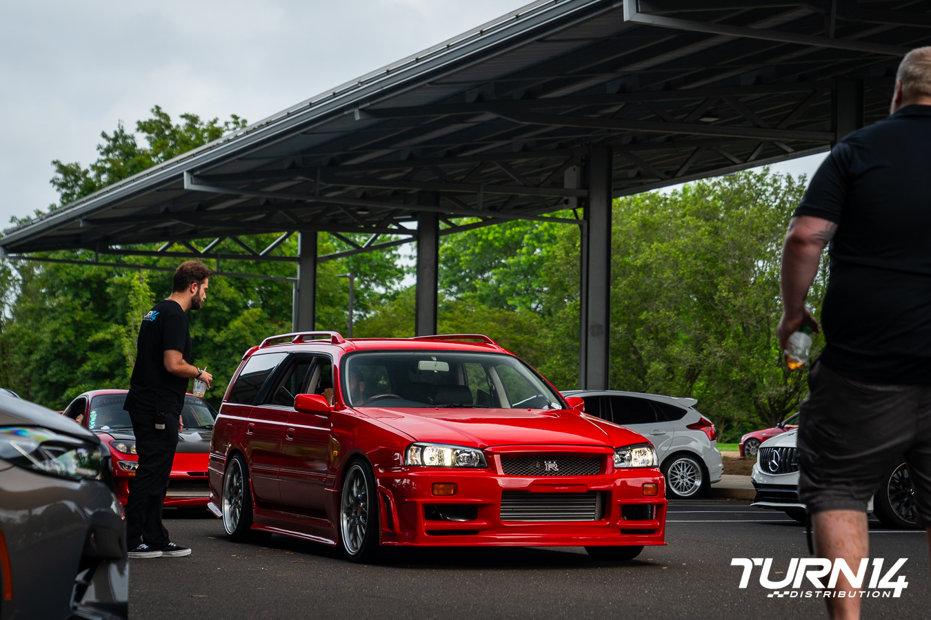 Ricardo Jeldes’ striking red Nissan Stagea with an R34 front-end conversion was a showstopper at the Turn 14 Distribution Cars & Coffee event. Recently imported from Japan, just five months ago, the build effortlessly blends the practicality of a wagon with the aggressive styling of a Skyline. The R34 front clip gives the Stagea a bold, motorsport-inspired look, while its deep red paint and lowered stance amplify its visual presence. With its clean execution and rarity on U.S. roads, the car quickly became one of the most talked-about vehicles at the show.