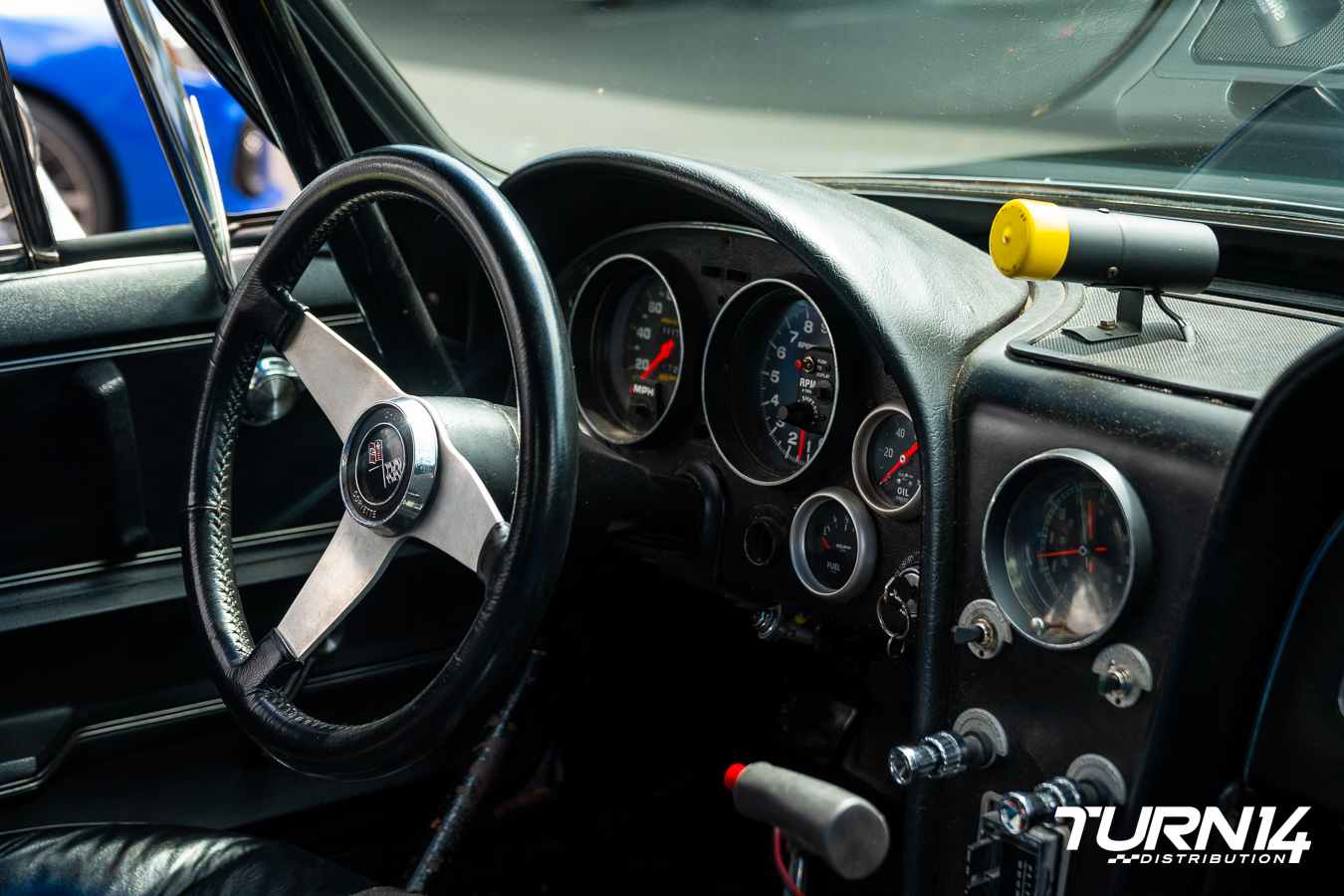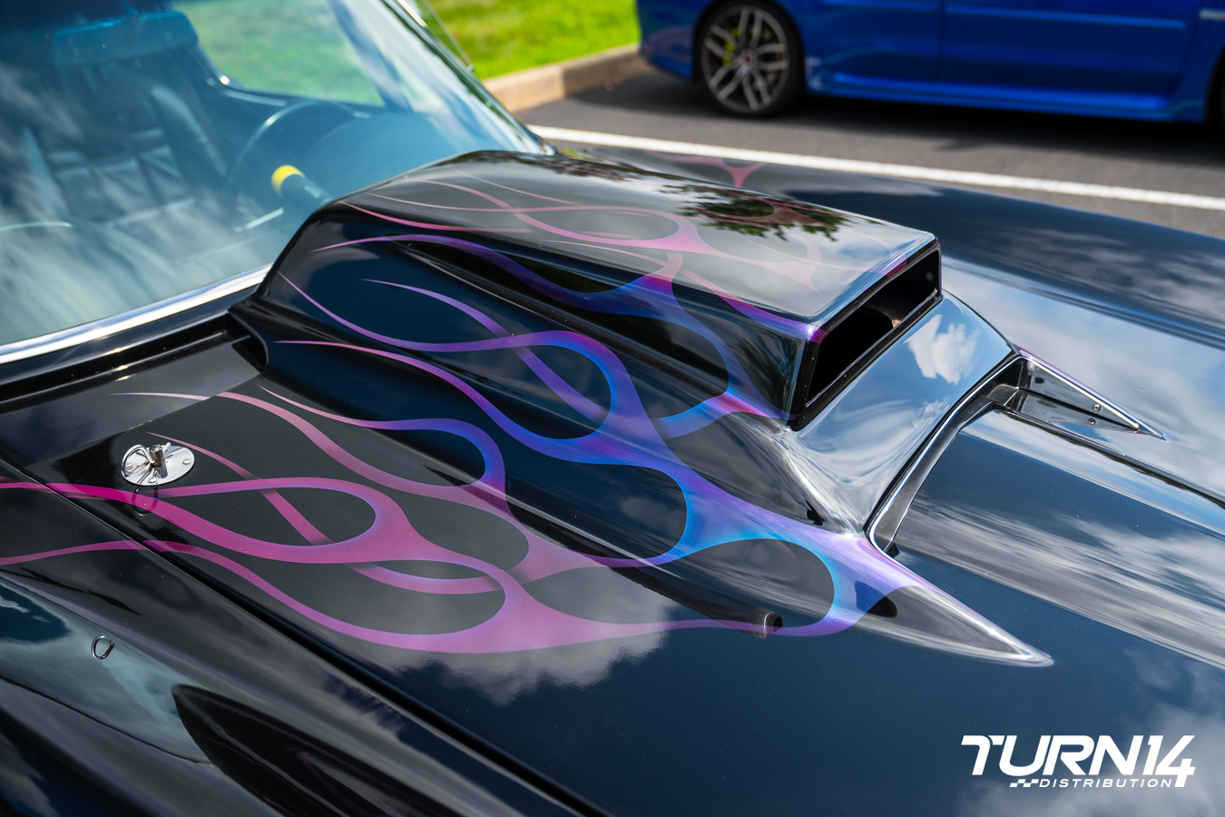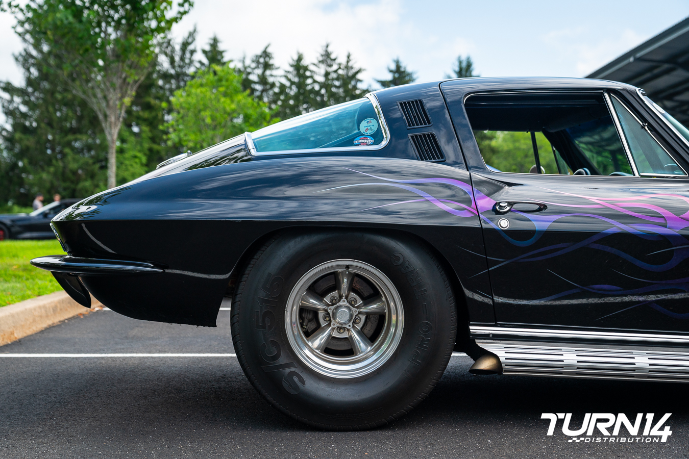Don Lemek has been collecting Corvettes since the early 1970s, and among his collection is this standout 1965 model, which he has owned for approximately 25 years. The car features a tubbed rear with a 4.56 Chrysler Dana 60, Pro Trac 33x22x15 tires, and American Racing wheels, 15×15 in the rear and 15×6 up front. Twenty years ago, Don applied a custom paint job featuring flames created with DuPont Illusion paint, which shifts color depending on the viewing angle. He carefully preserved all the original body lines to maintain the authentic Stingray silhouette. A Grumpy Lump hood scoop from the 1970s is topping off the build, mounted on a factory 1967 427 hood.
