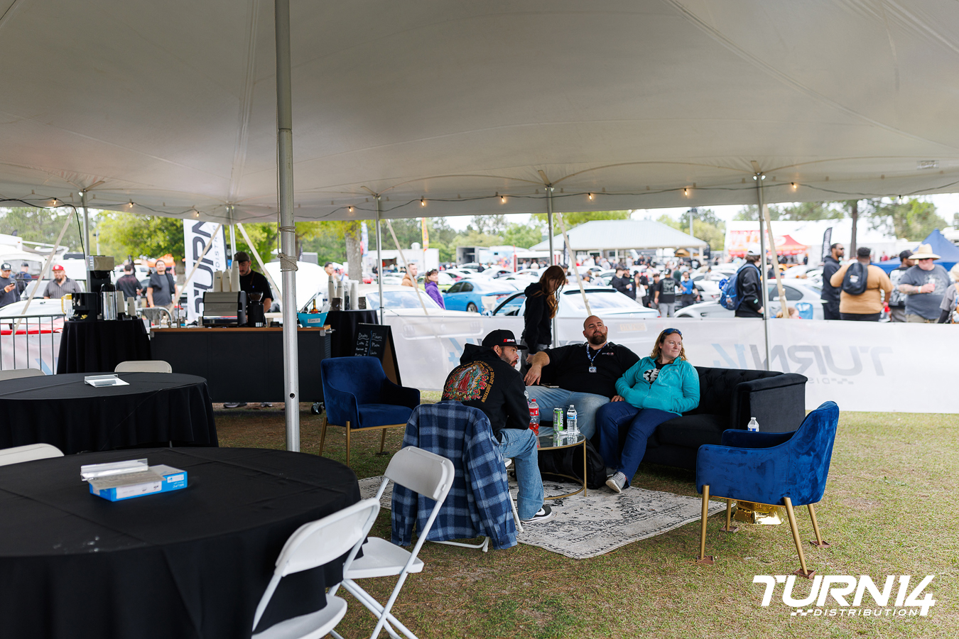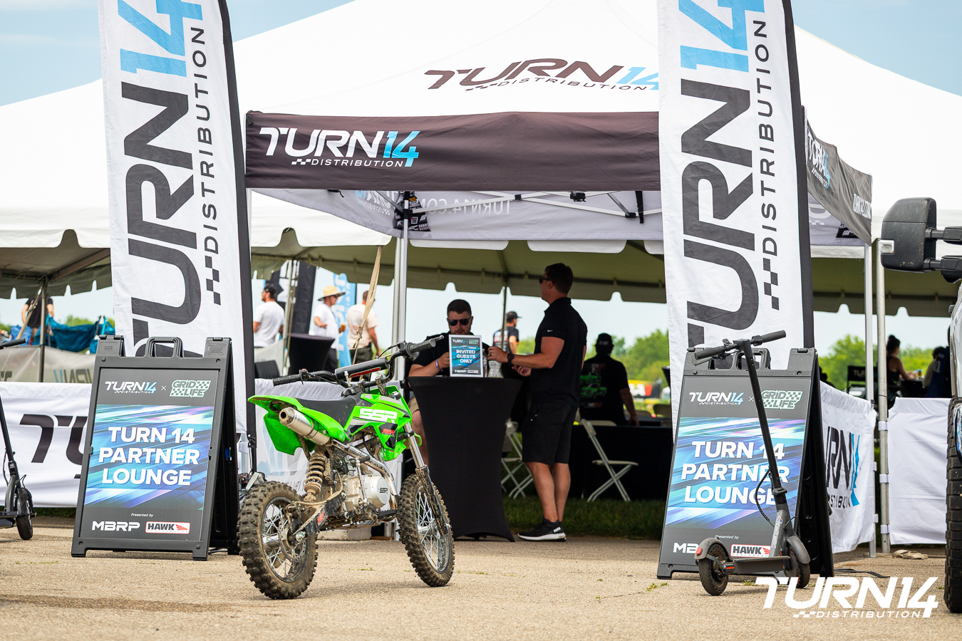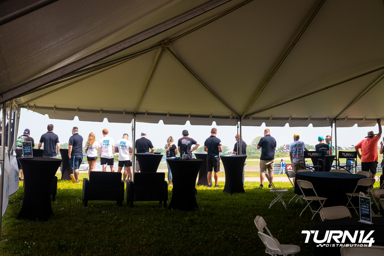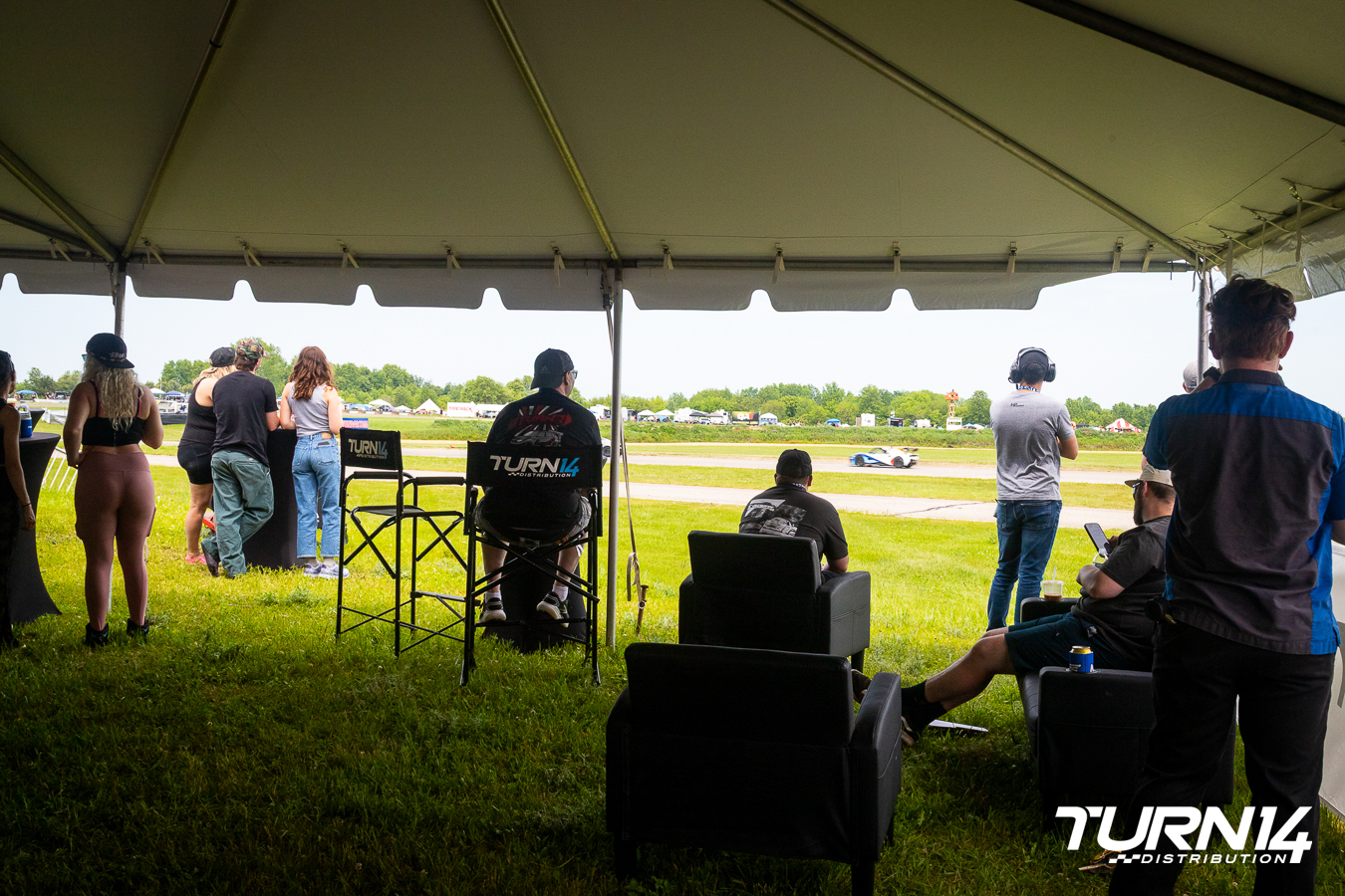 At Midwest Festival, where it all started 12 years ago, the Turn 14 Partner Lounge was alive with energy. Thousands of fans descended on Gingerman Raceway for a weekend packed with music, motorsports, and community, and our lounge quickly became the go-to retreat for our customers and partners. Positioned trackside between Turn 1 and Turn 2, the Partner Lounge offered unbeatable views as drivers flew down the straight and started drifting sideways from turn to turn. Guests lined the edge of the tent, just feet from the action, taking it all in from one of the most exciting spots on the circuit.