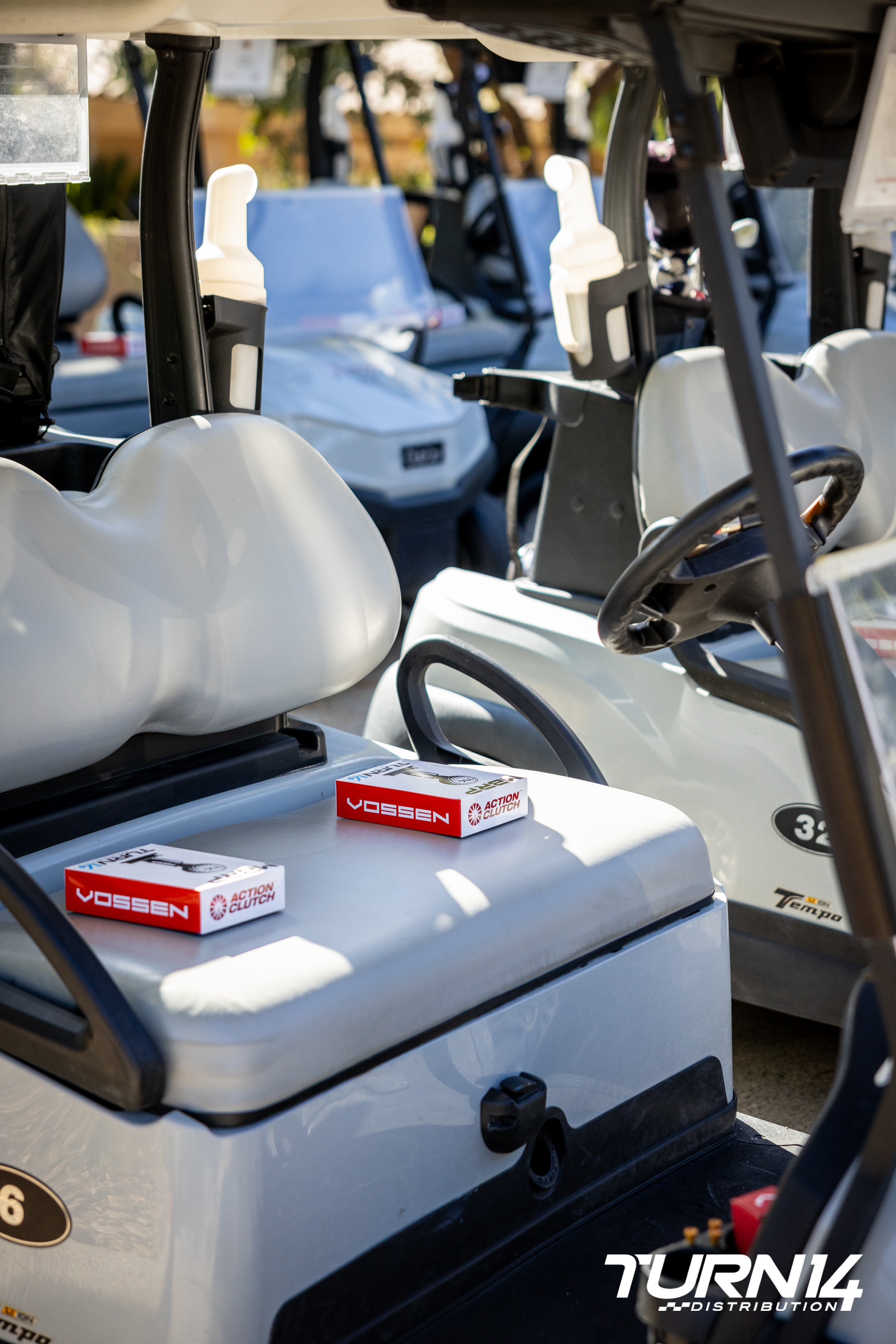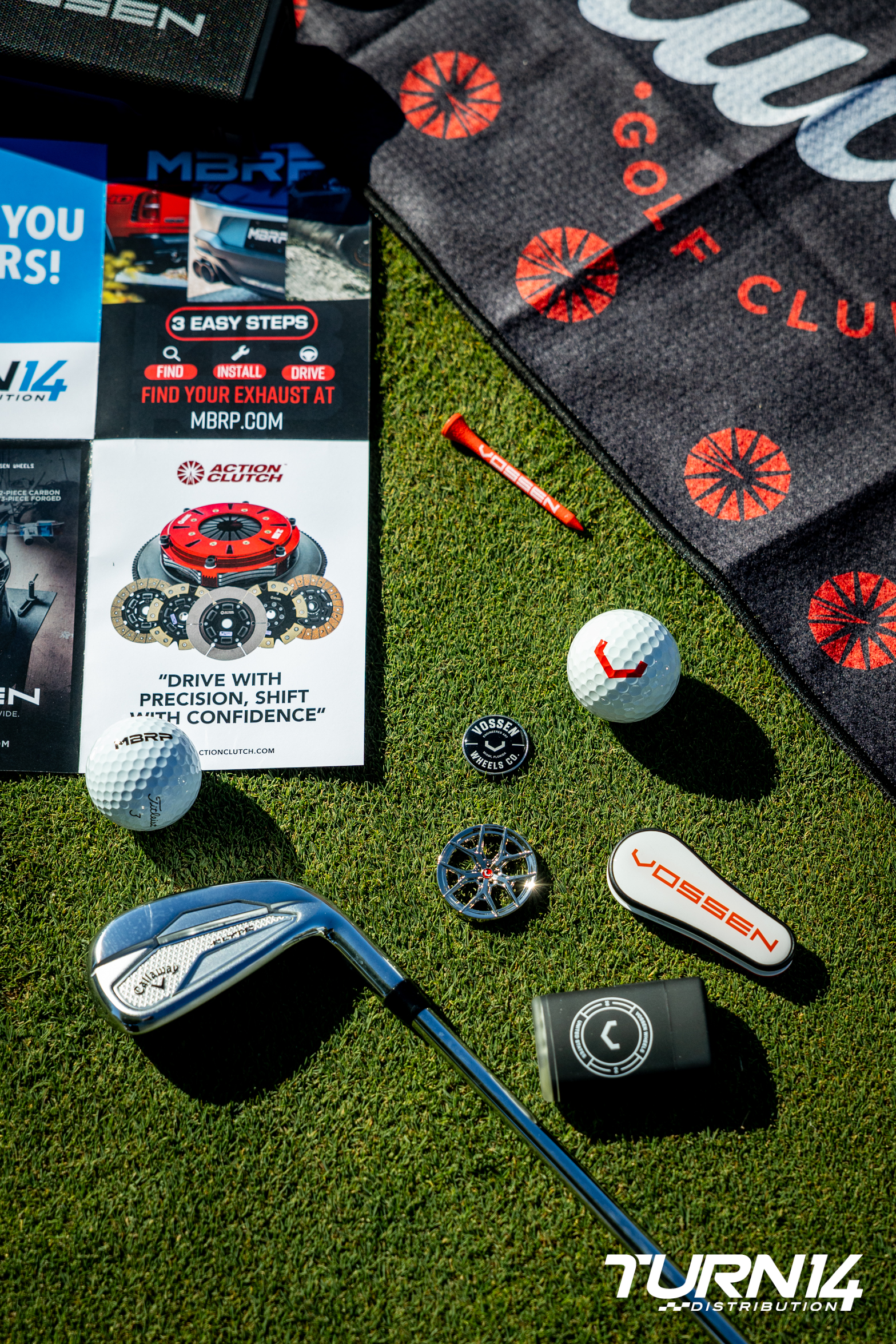 No one left this tournament empty-handed. Each participant was handed a premium gift bag stuffed with Turn 14 Distribution, Vossen, MBRP, and Action Clutch branded golf essentials, with the added bonus of a $150 voucher to spend at the exclusive Travis Mathew pop-up shop on site. Whether on the course or cruising the halls of SEMA later in the week, everyone was geared up and looking sharp.