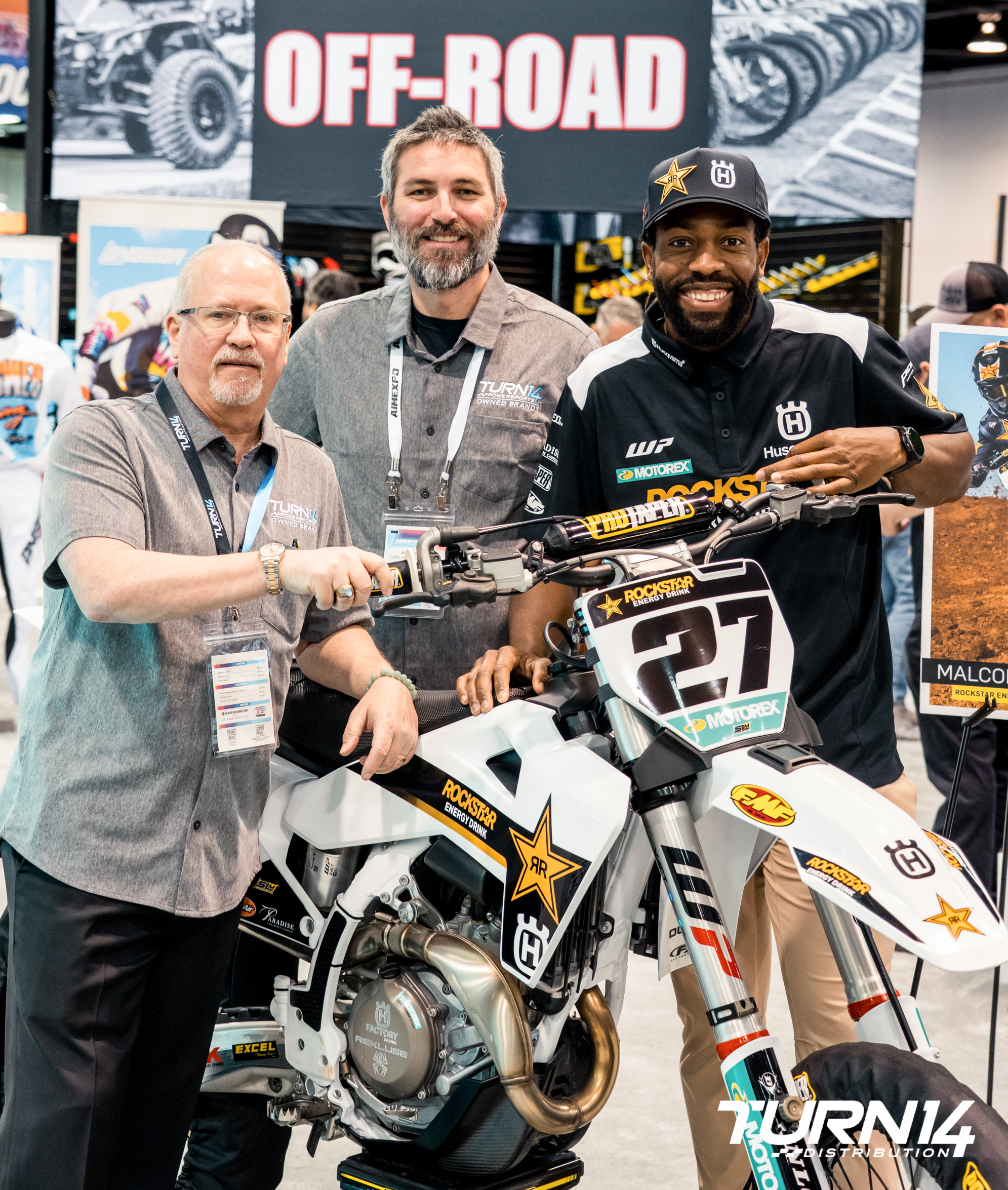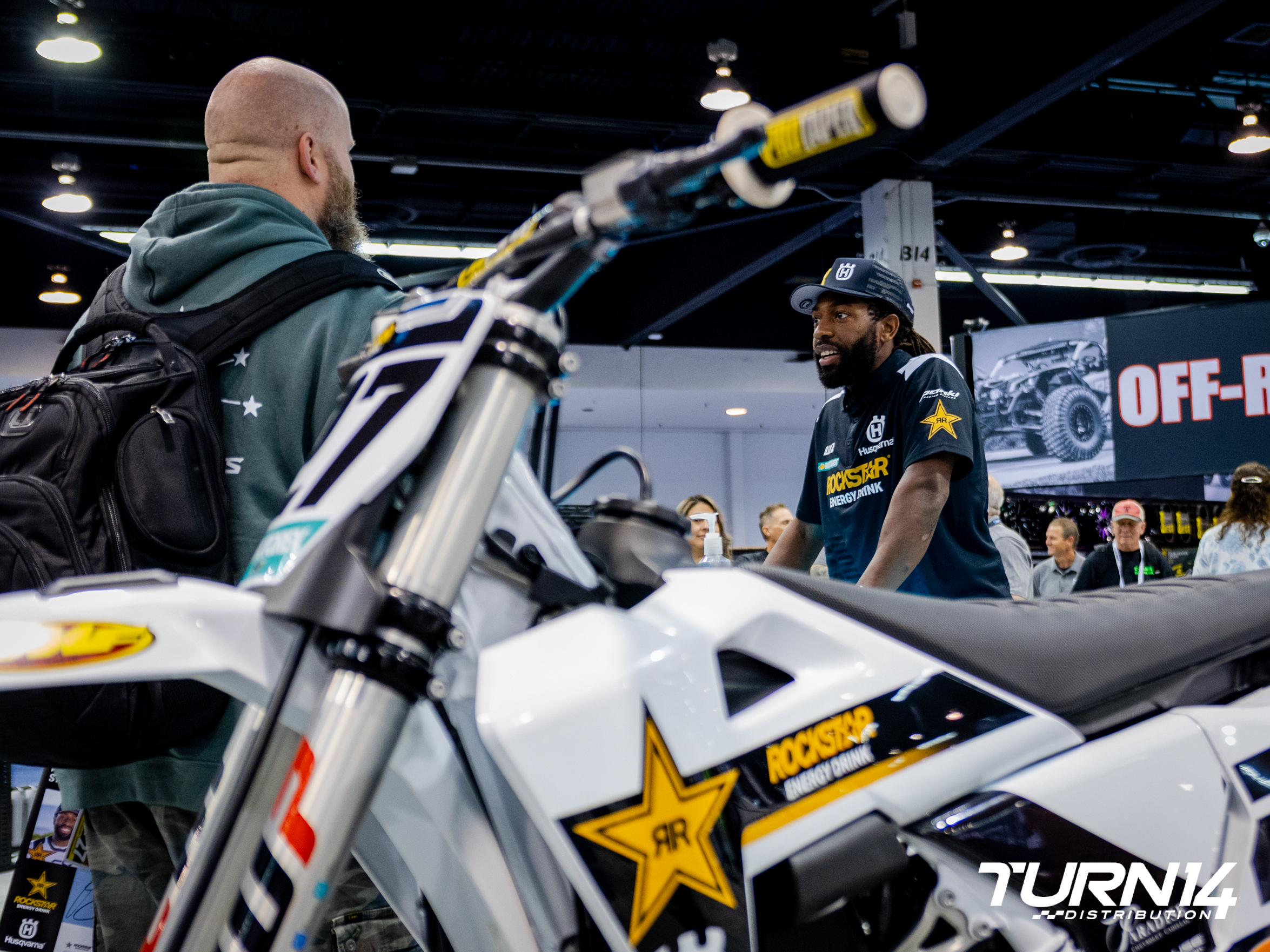 With both questions and coffee cups refilled, the energy shifted back to the show floor as Turn 14 welcomed Supercross champion and ProTaper rider Malcolm Stewart to the booth. It didn’t take long for fans to line up for a chance to connect and walk away with signed memorabilia from Supercross royalty.