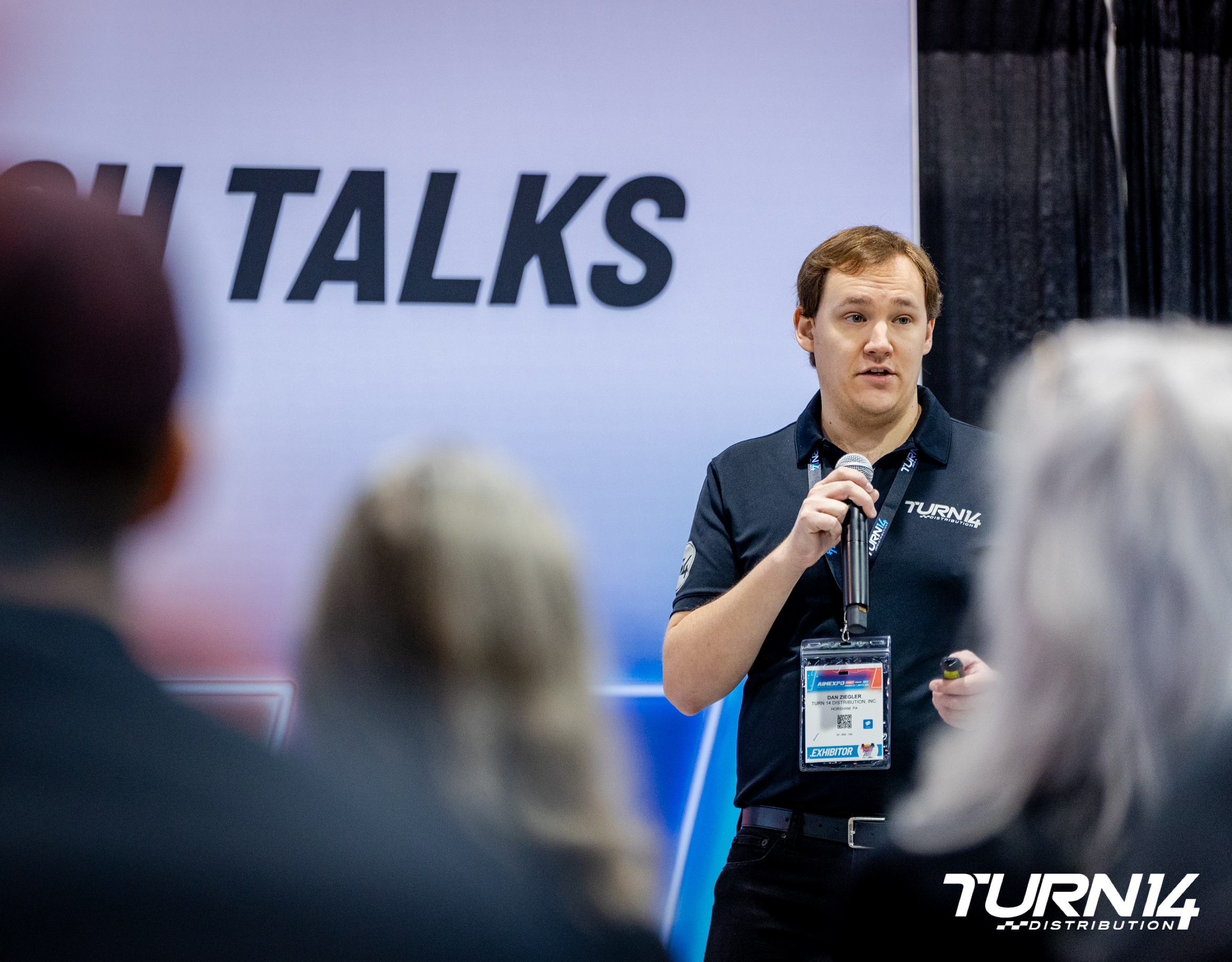 Turn 14 Distribution’s dealer support continued at the Digital and Tech Center booth, where senior business partner integrations manager Dan Ziegler presented on maximizing availability and revenue. The discussion walked through how dealers can evaluate inventory across multiple distributors by weighing fulfillment speed, total cost, manufacturer inventory, and real-time data.
