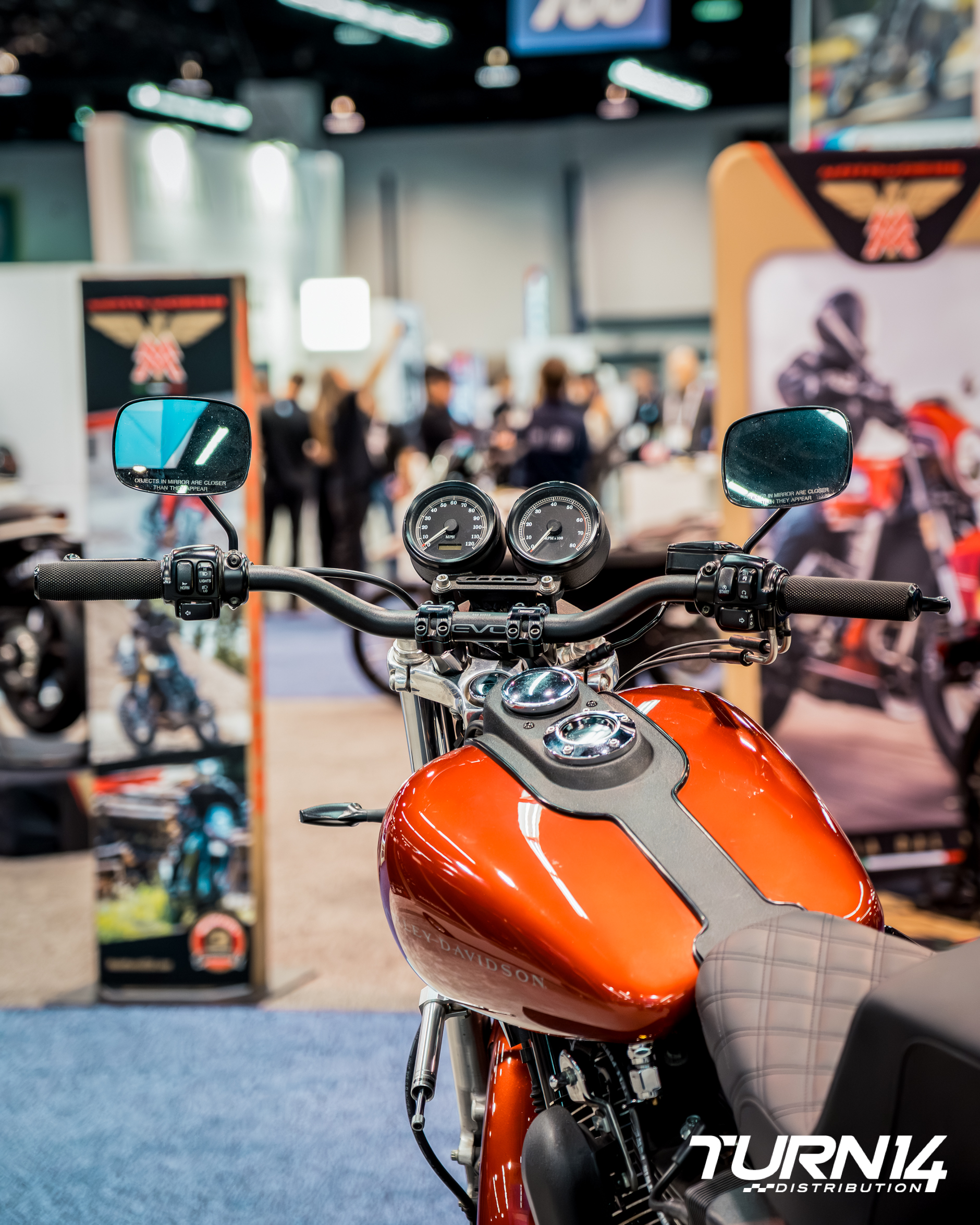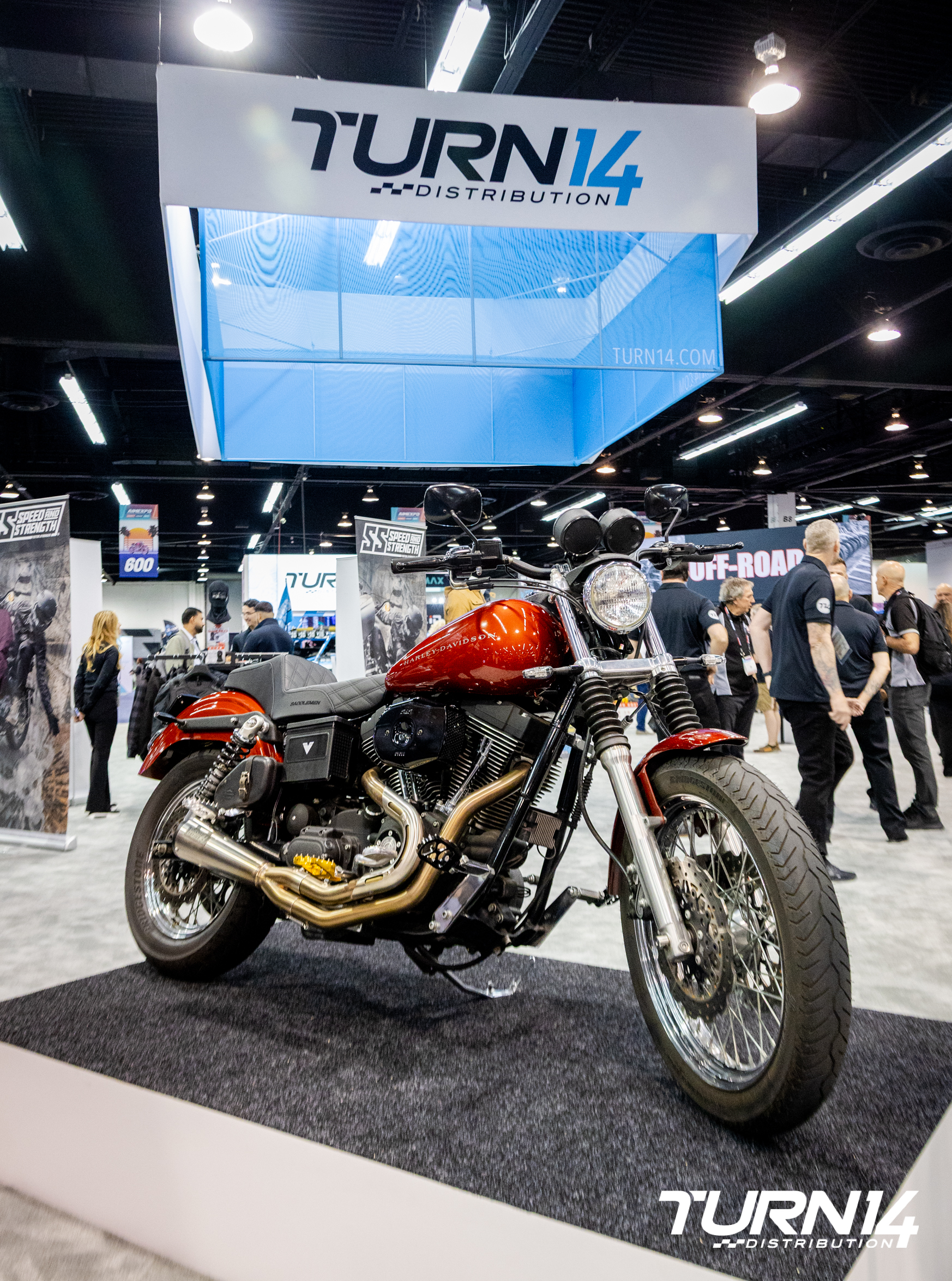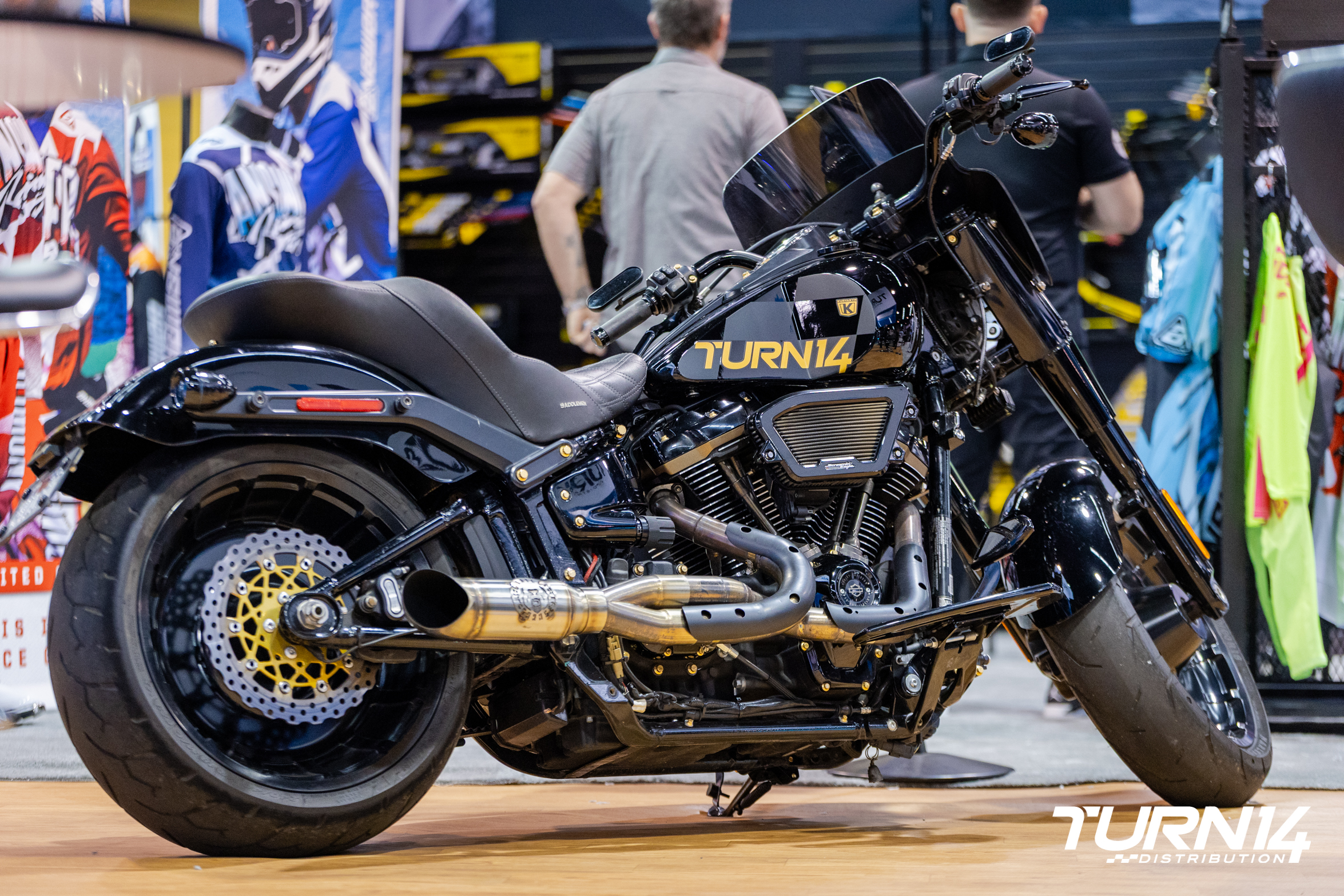 Our sprawling section was more than just a parts display. From Hayden Deegan and Malcom Stewart replica dirt bikes to a trio of V-twins and a utility-focused UTV, the entire fleet was on full display. Headlining the lineup were the BILSTEIN x Turn 14 Distribution X3 build and a limited-edition 2020 Harley-Davidson Fat Boy loaded with Kuryakyn components—standout builds that drew attention from every corner of the powersports world.