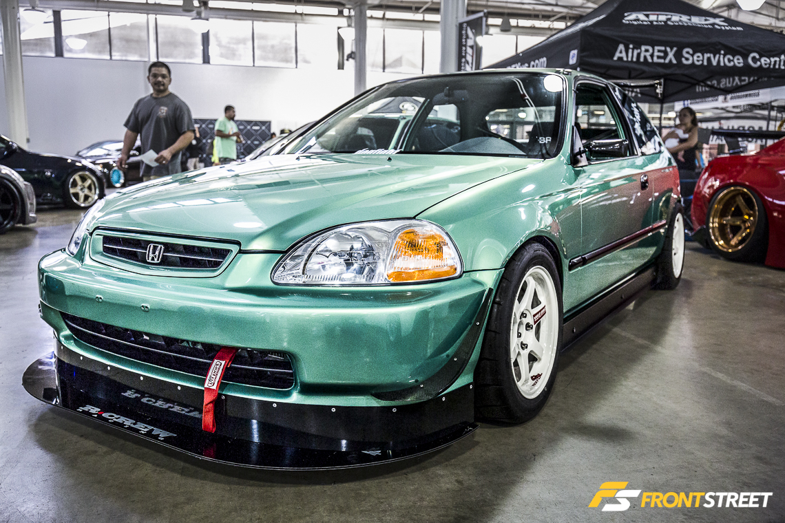 Drag race cars normally find their home on straight-line racetracks a quarter-mile in length, but when they’re as meticulously modified as this all-motor H22 engine-swapped Civic, they can also hold their own in a car show environment.
