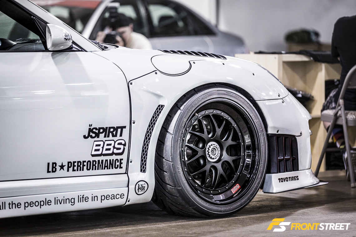 With a body covered in a muted grey tone, altered with a full Liberty Walk widebody kit, and rolling on contrasting black BBS Motorsport GT3 wheels, this 997.2 Porsche 911 Turbo was a star of the show in the JSpirit booth.