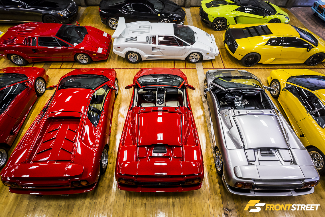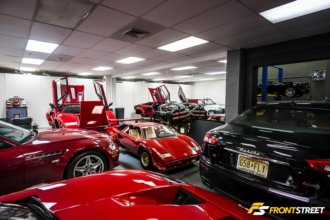 Lengthy Lamborghini automobiles populate every row of the room. Interstate even houses two examples of the exotic manufacturer’s limited production SUV from late in the 80s decade. A clear bias towards the Lamborghini make is evident throughout the vehicle’s overwhelming presence in the building. This affection was brought about when the owner was a child staring at the posters on his bedroom wall. “The Countach picture started it all for me – that was my era”, says Waldie.