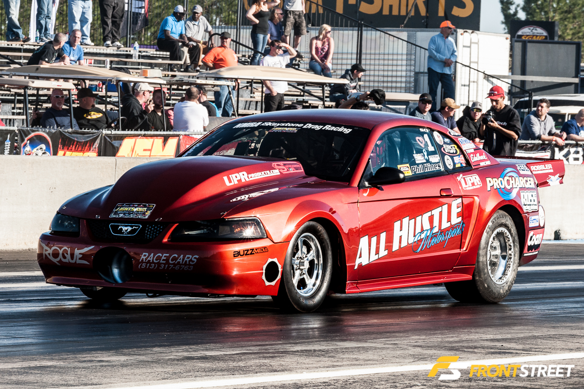 David DeMarco made the long trek down from Boston to complete with his blown machine in RvW. The team had spent some time testing previous to the event and had plans on going rounds. In this photo, Demarco had an oil filter failure after the burnout during the qualifying round, but the team managed to remedy the issue and qualify with a solid 4.10. In the first round, he ran into Josh Klugger and went down, as Klugger turned in a 3.92 to DeMarco’s 4.18.