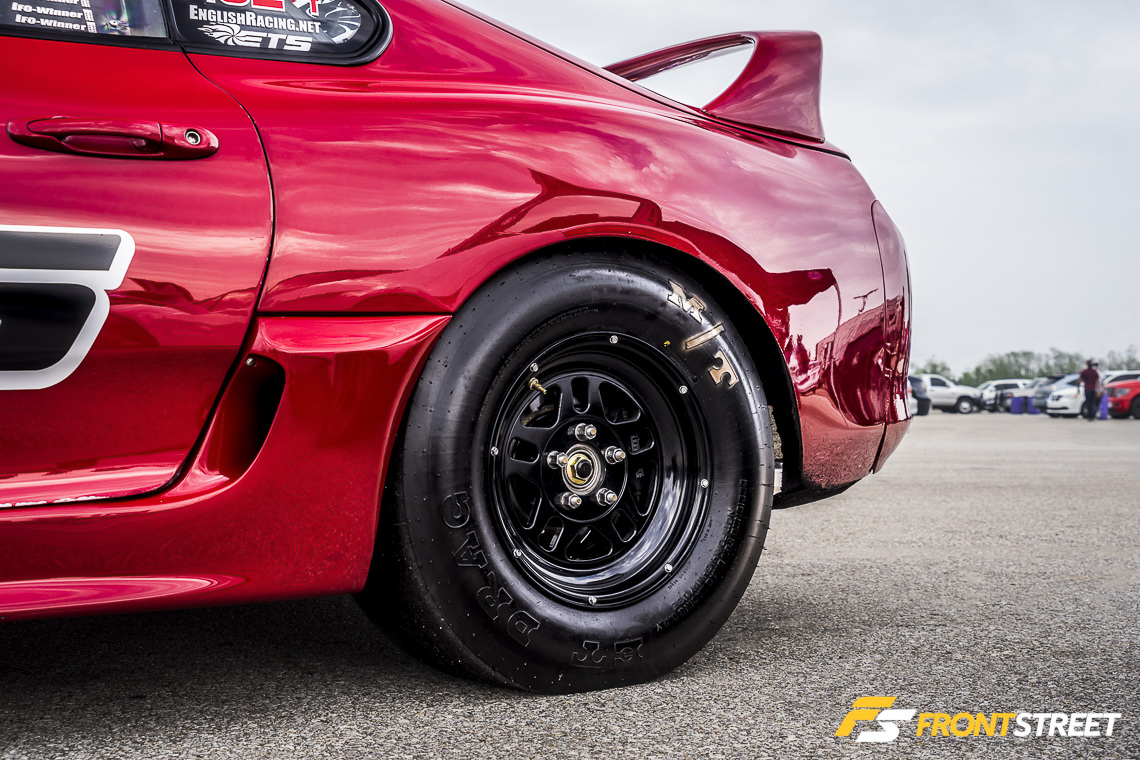 The JZA80 of Tim Robards’ is one of the remaining high-output Supra examples to attend the event, which in recent years has become a sea of lightning-quick Nissan GT-R chassis. Robards’ car uses parts from Extreme Turbo Solutions to develop big power, as the massive turbocharger helps the built 2JZ-GTE engine execute trips down the quarter-mile in the seven-second range.