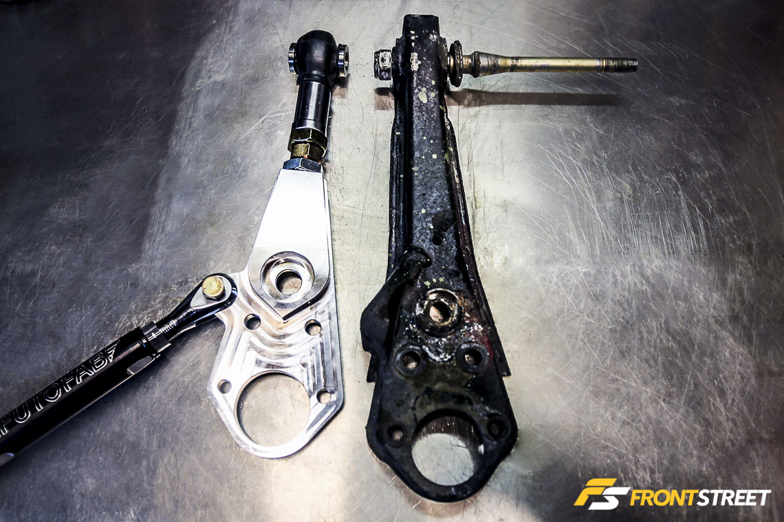 Limitless suspension adjustability is a big reason why we decided to upgrade to a set of double-adjustable lower control arms. The Futo Fab adjustable LCAs are made of 6160-T3 billet aluminum and are designed to replace the vehicle’s factory stamped steel control arms. Specially designed rod ends allow the user to turn the bolts to properly adjust the suspension and prevent premature and uneven tire wear.