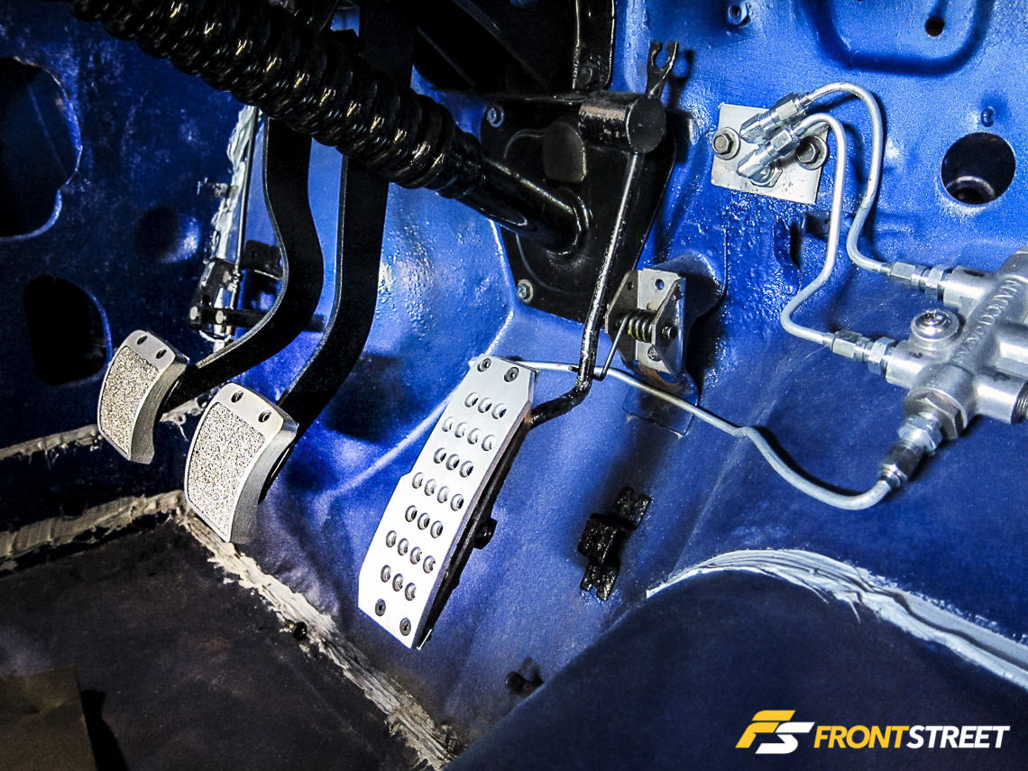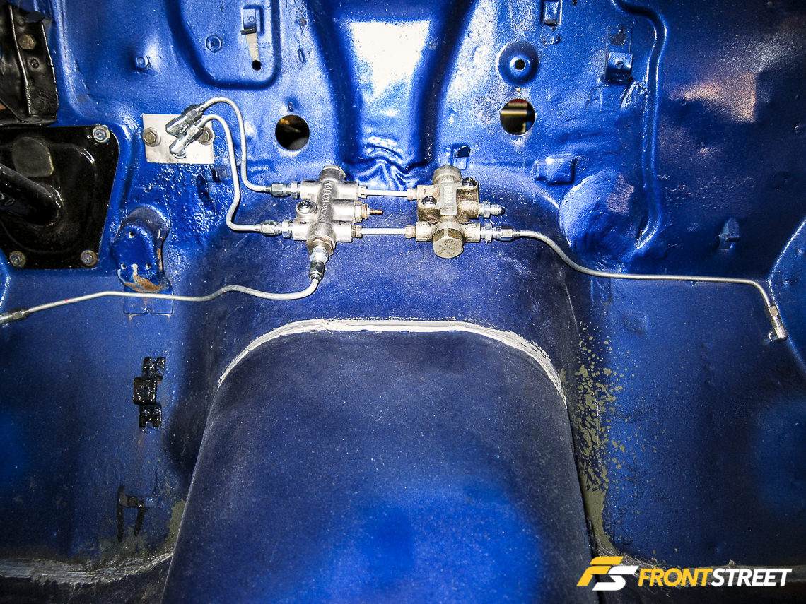 The clean appearance was exactly what we were attempting to replicate – we bent up some stainless steel brake lines as we painstakingly moved the entire brake system behind the firewall. The Datsun 280ZX proportioning valve we pulled from the junkyard was carefully mounted for the purpose of reinstalling the factory heater. Yes, even Californians need to keep warm from time to time! Also installed was a Nissan S14 gas pedal that was reworked and temporarily mocked up for the time being.