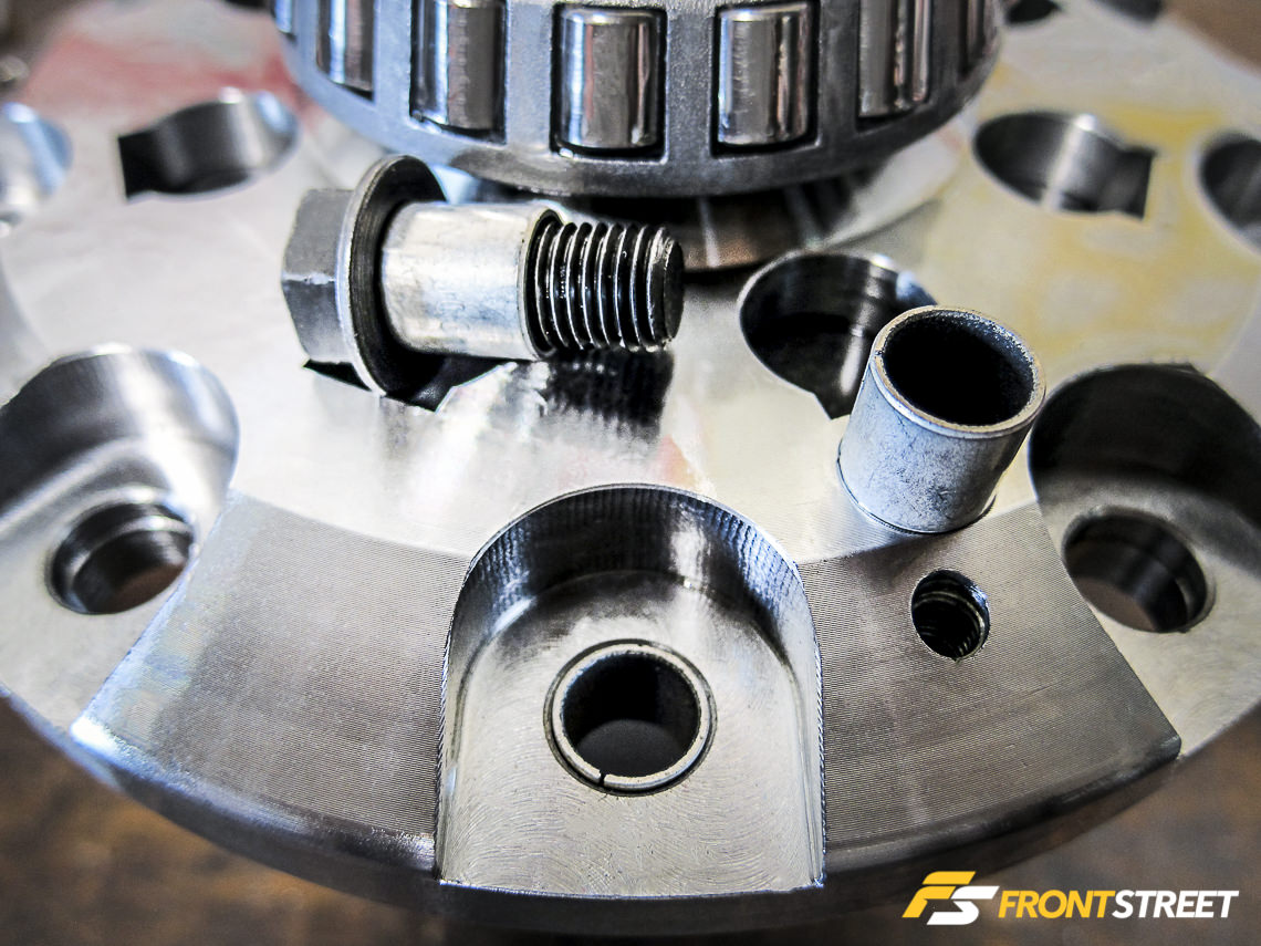 Since our new diff uses a 12mm gear bolt, a quick web search netted some special hard metal Teflon lined collars from McFadden-Dale Industrial Hardware. These collars were the perfect solution to insert into the new diff while using the 10mm ring gear and bolts. Kaaz USA owner Ray Nakadate suggested we adjust the clutch packs to 80 percent locking. This was deemed necessary as with our lightweight car, 100 percent locking would be too aggressive for street driving and would do us more harm than good.