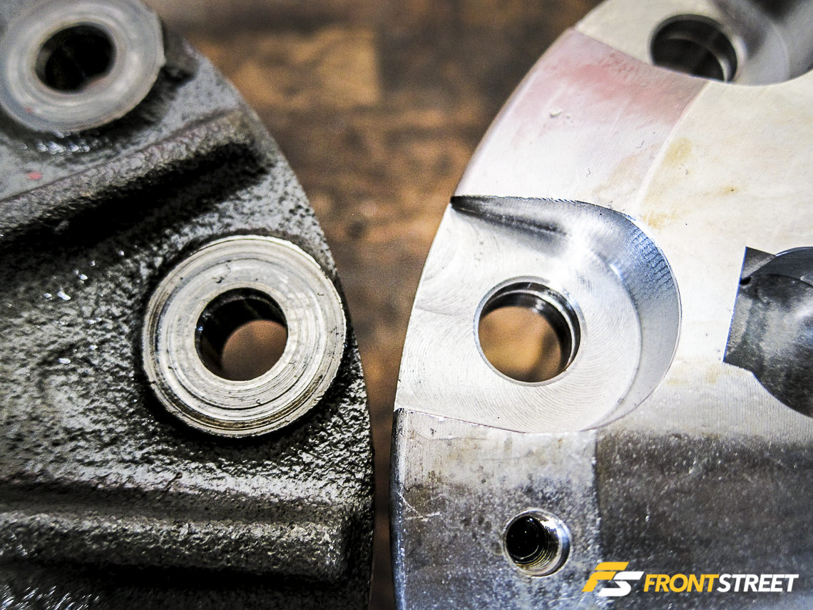 Shingo Yugamii of Bluemoon Performance in Costa Mesa, CA reassembled the unit and checked all of the tolerances, finalizing the setup to ensure proper ring and pinion backlash. We finished off the installation of our rear end using a Mad Dat Motorsports differential bracket kit; this comes with urethane bushings, which were the perfect solution as our originally modified bracket bushings were heavily damaged.