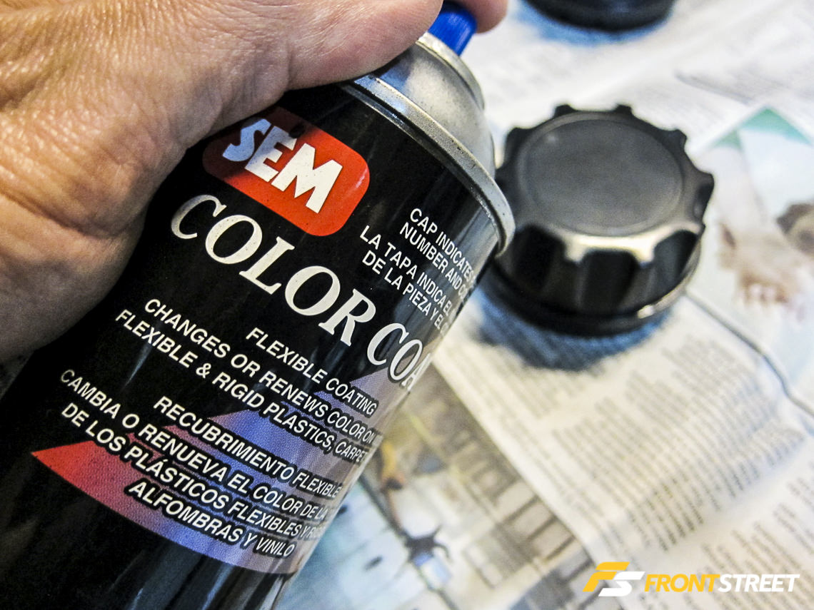 Your eyes don’t deceive you – that’s a catch can installed inside the trunk. The primary reason we mounted this unit here was to collect any fluids from the differential. Spirited road racing or auto cross driving can cause the rear end fluid to heat up and expand, which can then escape through the factory breather vent located on the rear axle and spill out onto the track. With this can’s location, the fluid is able to simply flow up into the tank, then back down when it cools off, without the worry of oil escaping the system.