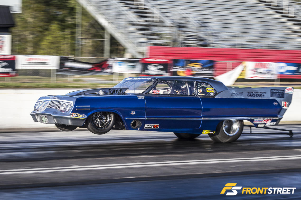 In the NMRA’s Pure Street class, it’s been the Teddy Weaver and Jimmy Wilson show since the beginning of 2015, with Wilson taking home the class title last year. So far in 2016, the roles have been reversed, with Weaver’s Roush-powered small-block Mustang taking home top honors at the first two races. In Georgia, Weaver sought out the assistance of former NMCA Mean Street championship team (and current Ultra Street racers) Alan and Dave Von Ahnen for crew duty, and the return was worth the investment of hot dogs and air beds. In the final round of Pure Street, Weaver’s machine responded to the touch with an awesome 9.59 blast at nearly 140 mph, while Wilson’s car bit hard and shot for the sky. Weaver also reset his own record down to 9.55 in the first round of competition against Billy Gimbel.