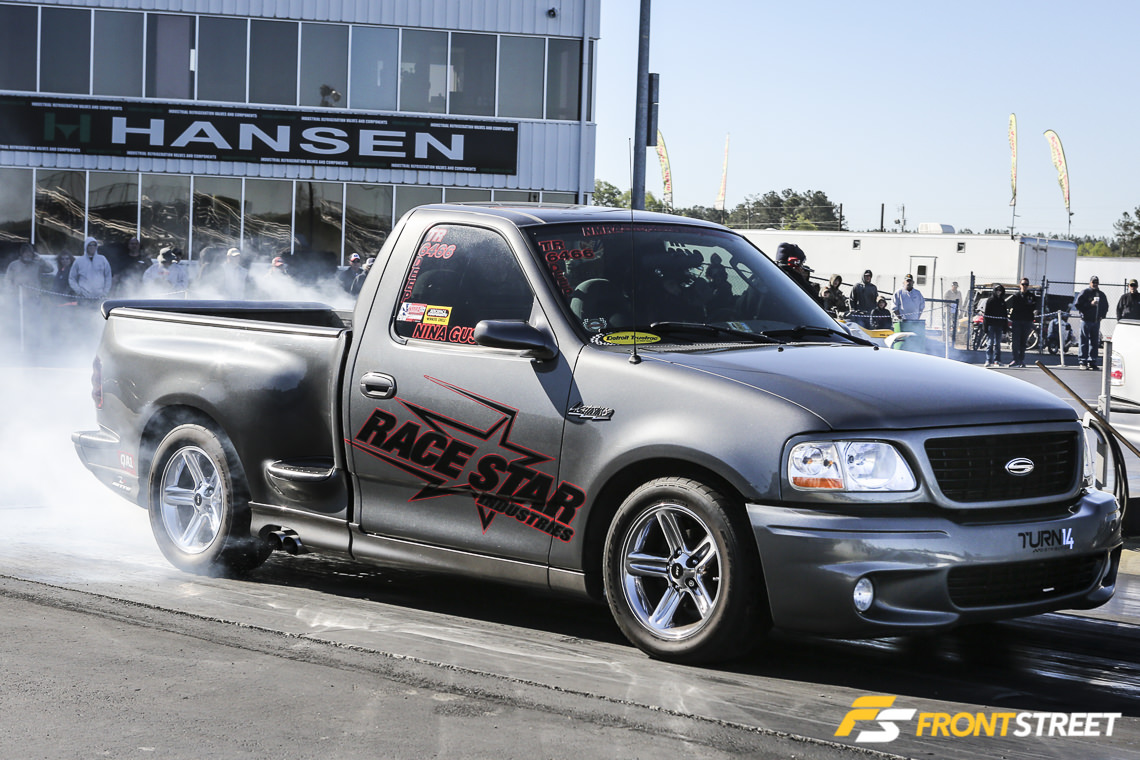 In a battle of the ladies, Nina Gusler (seen here) and Amanda Saad faced off in the final round of the NMRA’s Truck and Lightning class. Saad won the battle on the tree and to the big end, running closer to her dial in a pedalfest. We spoke with Gusler after the final round and she said the track wasn’t there for either competitor, but she was happy to see Saad take home her first-ever win.