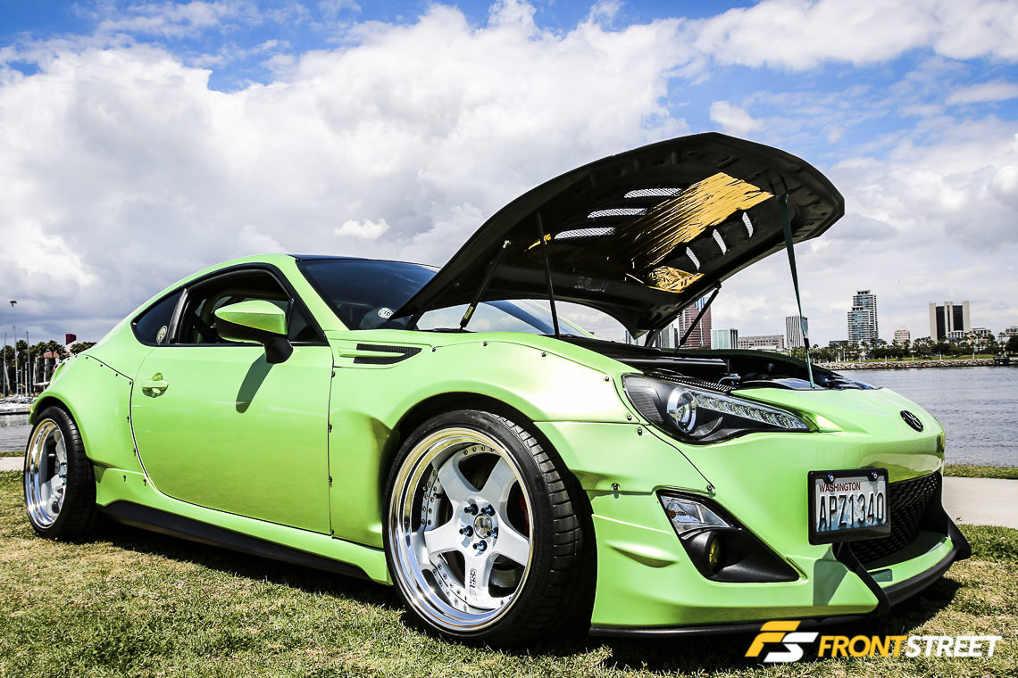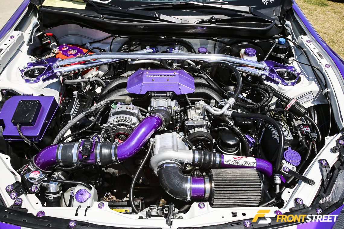 Dubbed the Panda 86, this Scion was built as an all-purpose track machine. Equipped with a Jackson Racing Rotrex C30 supercharger, HKS header, and Invidia exhaust, the boxer engine now makes 394.2 whp and 279.4 lb-ft wheel torque. Exterior modifications include 18X10.25-inch XXR 557 wheels and a Rocket Bunny V1 wide body kit. Interior upgrades consisted of Corbeau LG1 buckets, racing harnesses, STRI gauges, custom dash, and a full CT Sounds audio system.