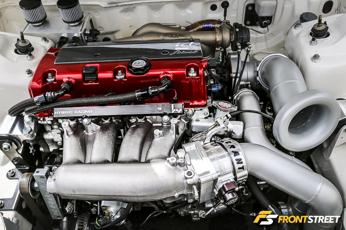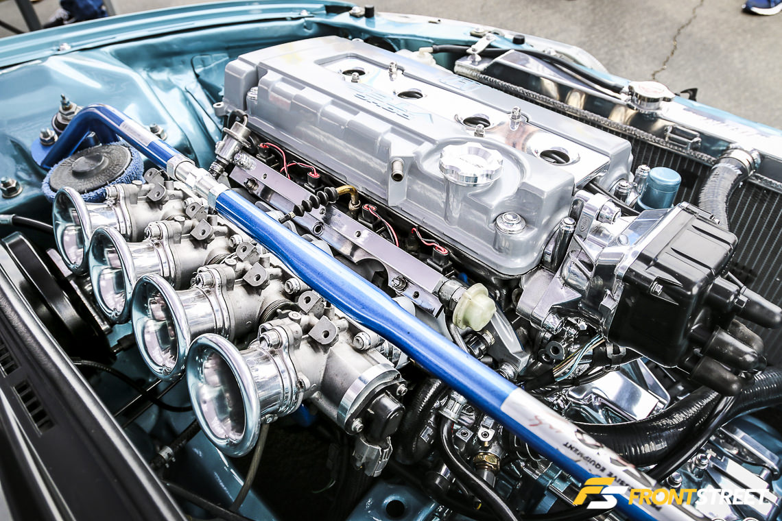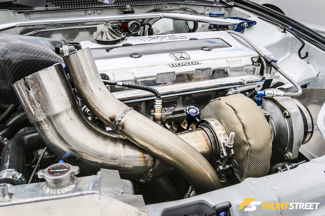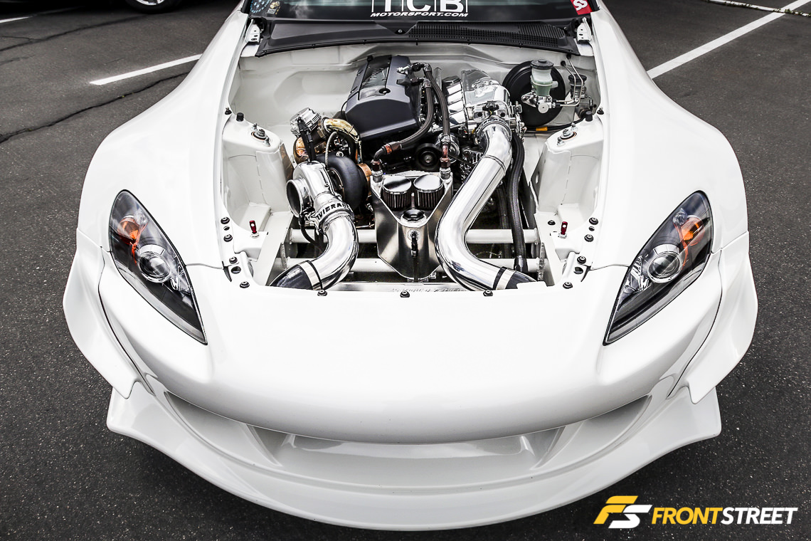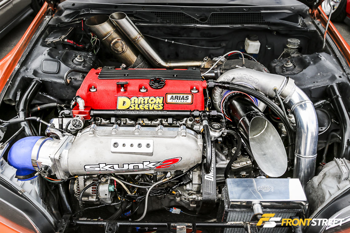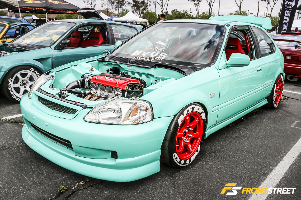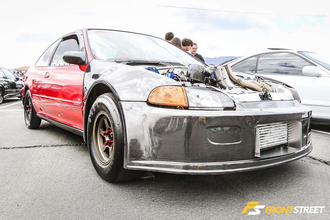 Sportcar Motion’s ’92 K20 powered Civic was on display front-and-center during the weekend’s festivities. Equipped with a Garrett GTX-3582R turbocharger, Golden Eagle sleeves, intake manifold, Sportcar Motion custom port and polish head, JE 11.5 to 1 pistons, and Turbosmart 45 Hypergate wastegate, this four-door sedan pumps out stout numbers — 708 horsepower and 506 pound-feet of torque at 29 PSI of boost.