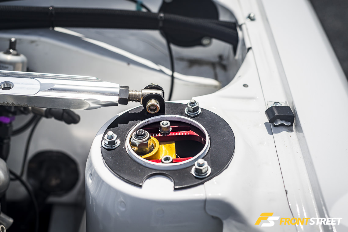 They began by fabricating engine and transmission mounts as well as having a custom-length driveshaft produced. The chassis came equipped with a Techno Toy Tuning subframe from the previous owner, which the team at SWH then modified to position the 2JZ engine exactly where they wanted it in the bay for optimal weight balance. Other than a couple small changes including increasing the boost pressure to 49 psi, the now-1000 horsepower engine essentially stayed the same during its transplant.