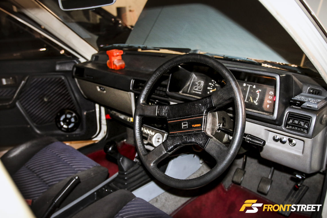 One of the cars which grabbed attention throughout the day was Rodrigo Catibog’s ’80 Mitsubishi Lancer. Imported directly from Japan, this GSR-converted machine was built from the ground up from a rusted-out RHD GSR Lancer along with donor parts sourced from a ’91 Mitsubishi Eclipse. The 4G63T engine was plucked from the Eclipse, then refreshed using HKS cams, cam gears, and an F-Con fuel management system, then topped off with an ultra-rare AMG spark plug cover. The interior was sourced from an SE 1800 Lancer before the entire vehicle was re-badged with Turbo MMC decals and outfitted with a full set of 14×6-inch Yokohama Advan wheels.