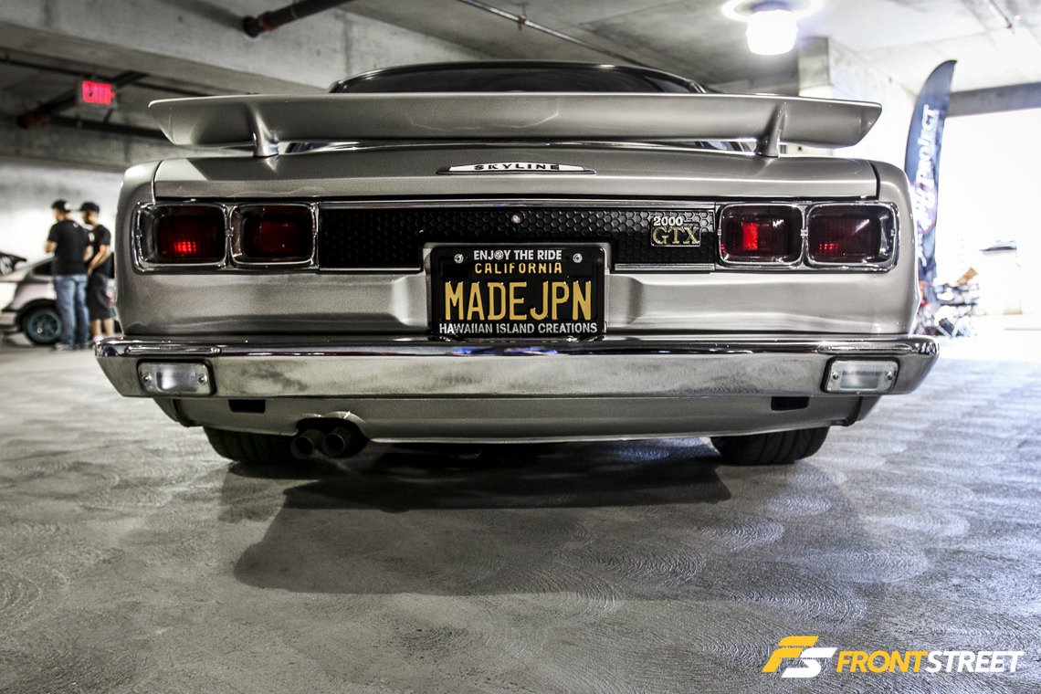 This ’71 Hakosuka – fully restored by Nissan Skyline tuner Rock Auto of Japan – has been tearing up the show scene and breaking necks in the process. The GTX is outfitted on a set of 17×9-inch -10mm and 17×11.5-inch -30mm offset RS Watanabe wheels to maximize wheel fitment under the fender flares. The car has also been outfitted with K-Spec coilovers and MK63 GTR brakes. A Nardi steering wheel adds some flair to the flawless interior, while owner Rick Ishitani put his finishing touches on the car by adding JDM floor and trunk mats, a Nissan dash cover, along with Techno Toy Tuning tension rods and roll center adjusters. Future plans call for upgrading to a set of 40mm Solex triple carburetors, a Fujitsubo FGK Super EX header and exhaust, and a JDM dual row radiator. We can’t wait to see how this ride turns out!