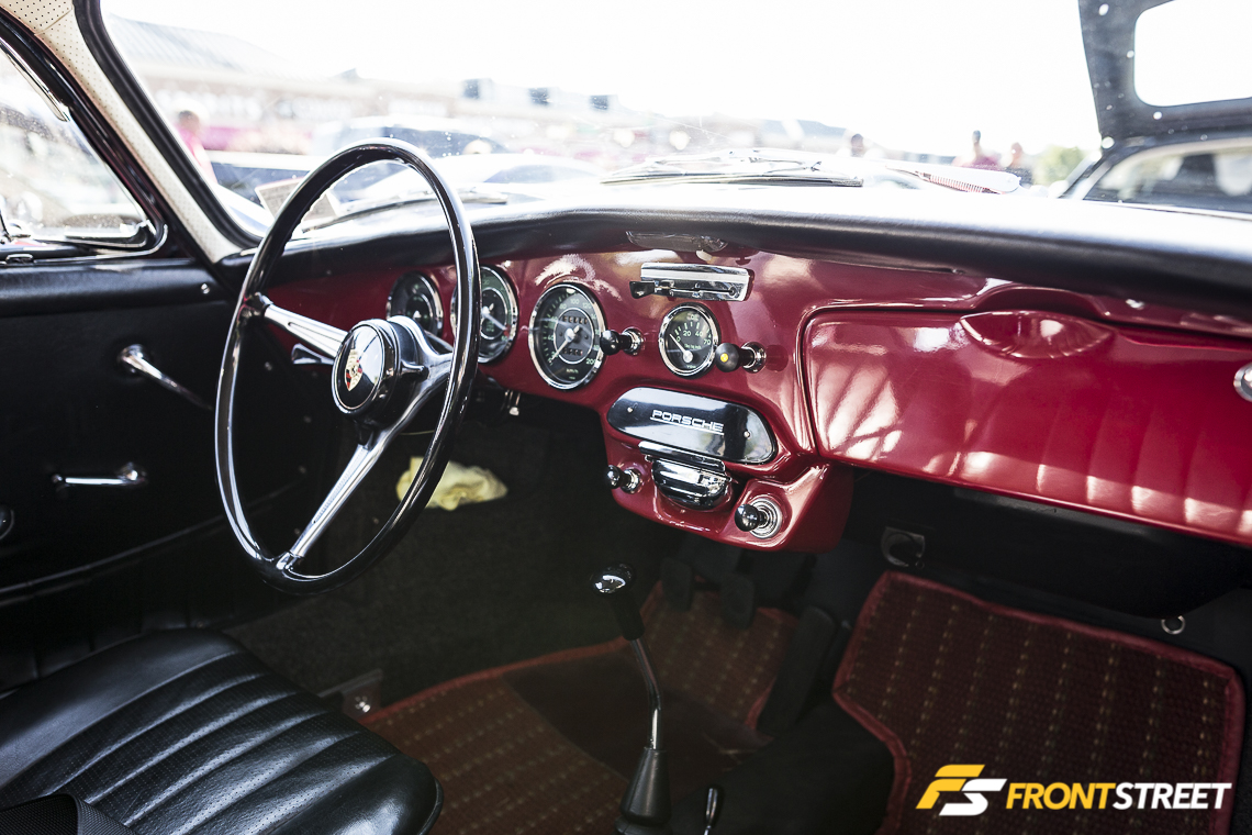 The Porsche 356 is a direct descendant of the Volkswagen Beetle; this ’64 356SC was built in the next-to-last model year of the 356 as it went away after 1956. The 356 is basically a Beetle on steroids, as it adds a second carburetor, better cylinder heads, and better camshafts. This particular example was imported from overseas, and I heard the owner talking with these gentlemen about how he has to convert the odometer reading from kilometers to miles when the car needs its annual state inspection. A beautifully simple car from every angle, and spotlessly maintained.