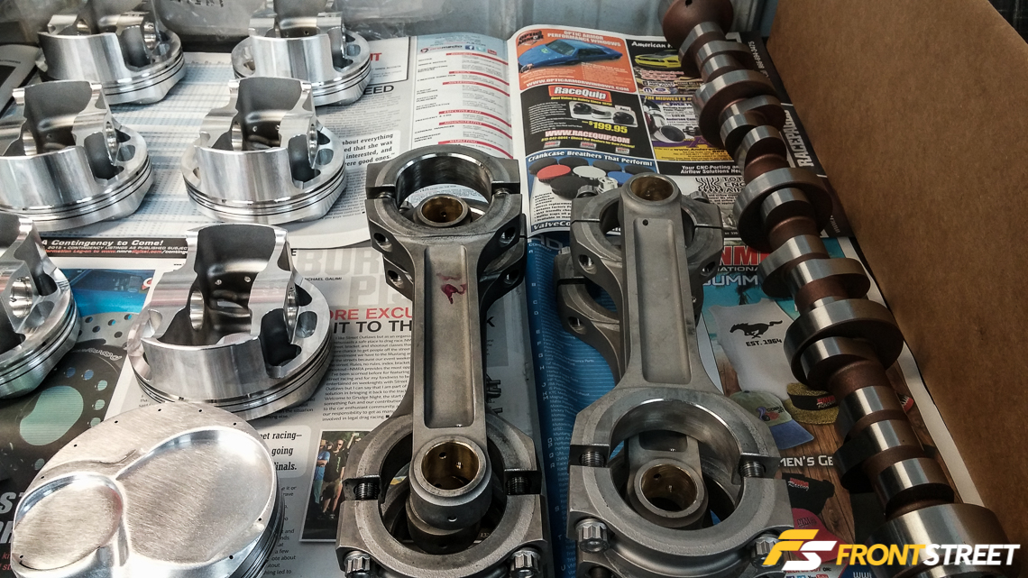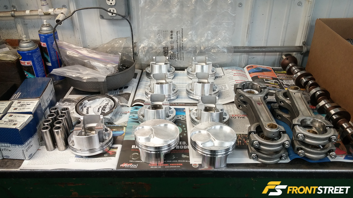 Rotating assembly components include Ross pistons and Crower titanium connecting rods.