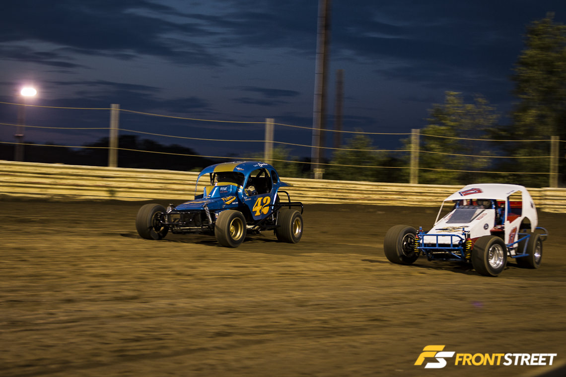 The Vintage Modified class had only a few cars in it, but it was evident that they were a fan favorite. Where else are you going to see an AMC Pacer, VW Bug, and Anglia all in one place in competition against one another, on the same track, at the same time?
