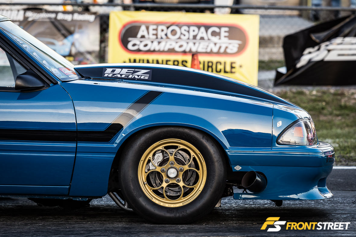 Coyote Stock has gone to the next level – top runners Drew Lyons (shown here) and Darin Hendricks have both installed 25.5-spec cages into their cars, despite the CS class running right at the 10-second barrier. In fact, both cages were done by Pro Tree Race Cars in Indiana.