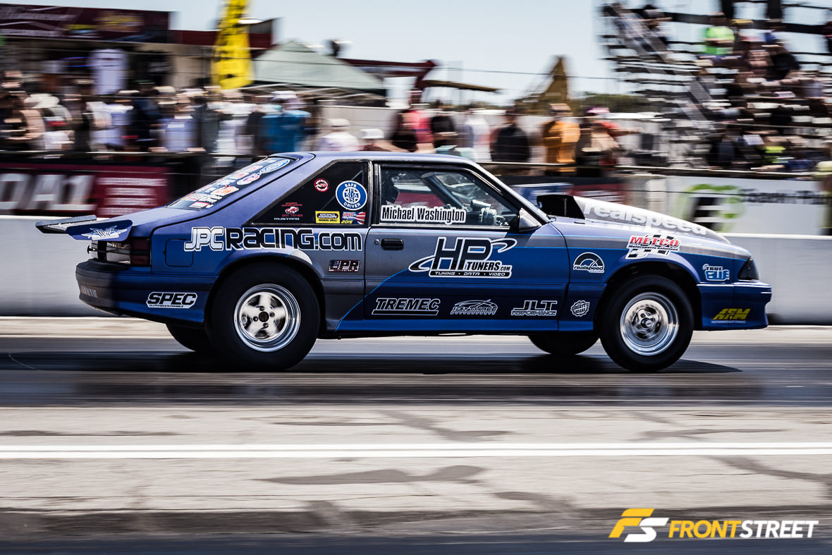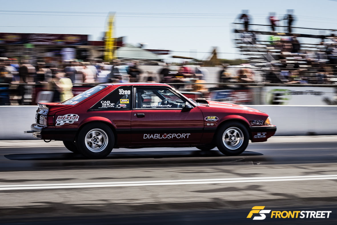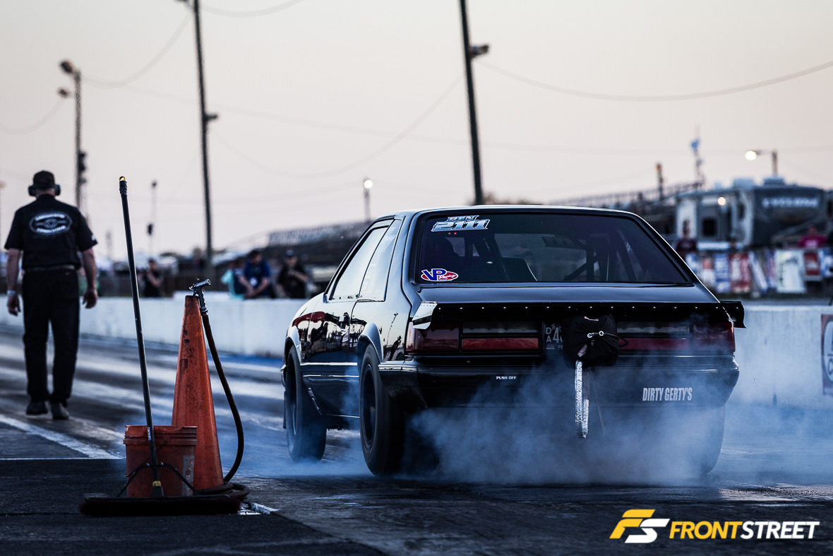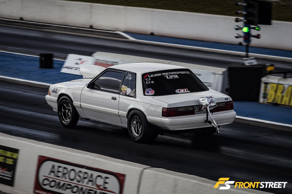 In the days leading up to the event, Turbo Coyote Shootout racer Justin Jordan spent somewhere in the neighborhood of 40 straight hours finishing up the assembly on his MBRP-sponsored Mustang. The car, which had been in the chassis shop for a winter upgrade, proceeded to knock down 7-second passes all weekend long. Jordan went to the semifinal round before losing to eventual class winner Sai Li when the track couldn’t hold the power.