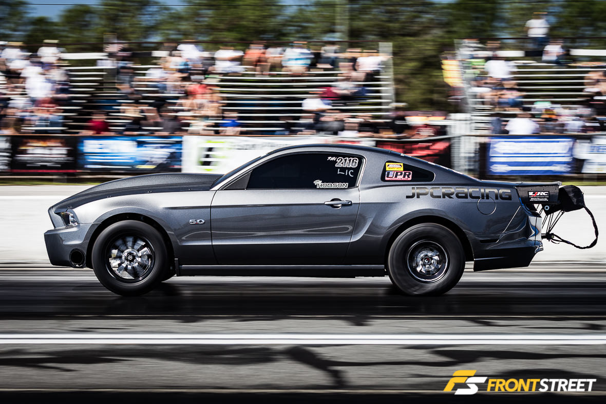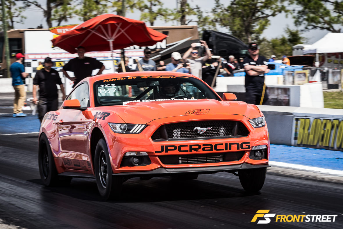 John Kauderer has been racing his Cobra Jet Mustang in the Coyote Modified class for some time now; with the help of the fine folks at JPC Racing, he finally found his way to a win this weekend. Last year, Kauderer stood the car up on the bumper with a monster wheelstand at the Maple Grove race and damaged the engine upon returning to earth. A new engine from MMR found its way between the framerails, and the team got back to work, culminating in a satisfying performance in Florida.
