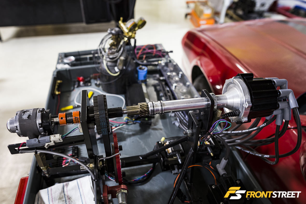 At first glance, this appeared to be a simple engine run-in stand, but after closer inspection I realized that it has both port fuel injection and throttle-body fuel injection systems from F.A.S.T. fitted to the intake manifold. Goodwin explained that this engine allows the technical staff to test a customer’s EFI parts – such as an XFI 2.0 system or XIM ignition box – to determine whether a part is faulty or a customer needs to look deeper into their vehicle for answers.