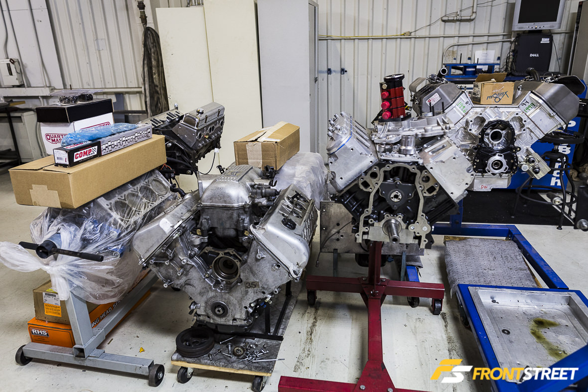 There are a number of engines which have been windowed in various places to allow the company to use a SpinTron tester, which gathers data about how the company’s camshafts, valve springs, rocker arms, and other related equipment actually performs in the real world.