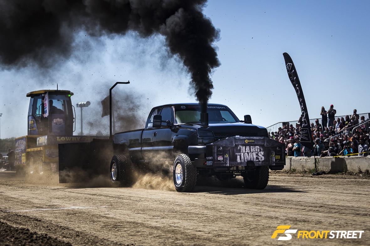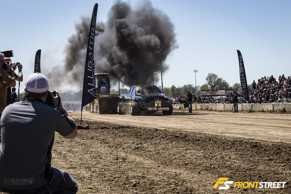 Unfortunately for Farmtruck, something on the engine expired on the dragstrip right at the mile-per-hour clocks, rendering the truck’s strip run its one-and-only entry into that portion of the event. The team subsequently repaired the truck and outfitted it with monster meats for the sled pull portion of the Ultimate Callout Challenge.