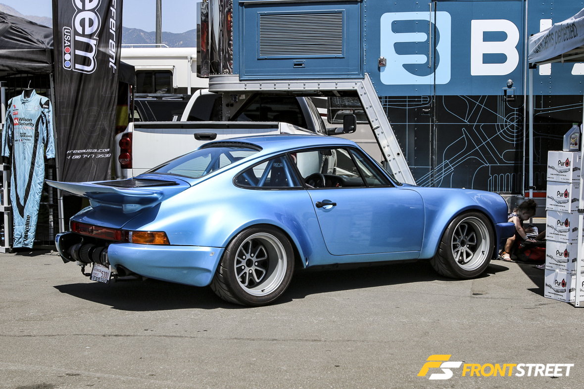 Bisimoto Engineering was on hand with a number of their shop cars including their infamous IROC-inspired Porsche 911/930, rolling on a set of 17×9-inch and 17×11-inch Fifteen52 Outlaw wheels.