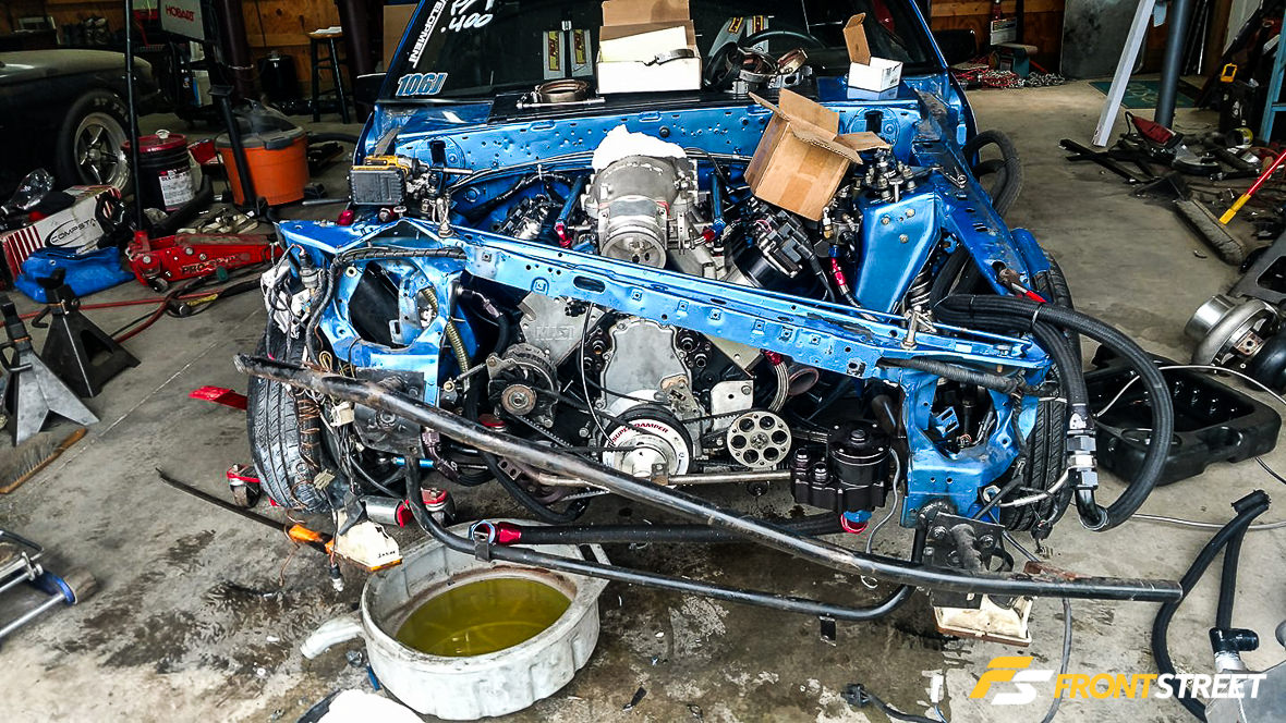 Prior to running the car at the track, he enlisted Troy Baum of RaceWires to help sort out the electrical system and ensure the car would run in top condition. By being smart about where he’s invested his money, he was able to cut corners in certain places—like by using flipped stock truck exhaust manifolds rather than a $2,000 set of custom turbo headers—and have professionals lend their expertise where it would make the most difference in the car’s performance.