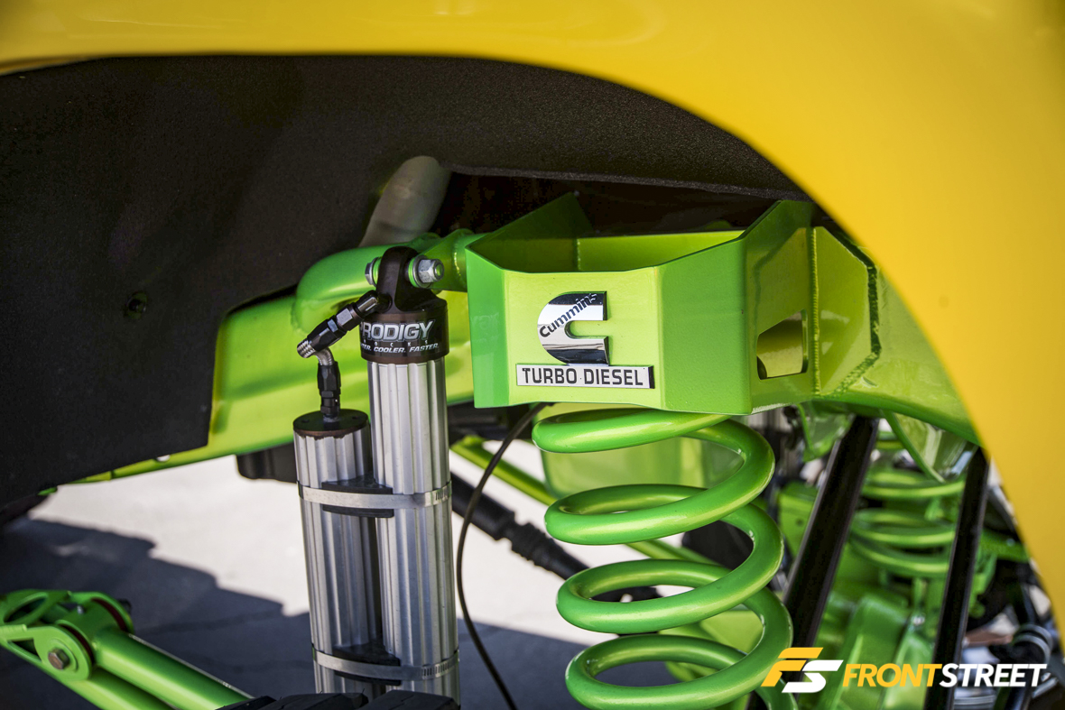 King Off Road Racing Shocks presented a fascinating interactive display, which showed how the inside of the shock’s piston and valving worked. The company had a beautiful Ford Bronco on stands with dual-piggyback reservoir shocks in the front.