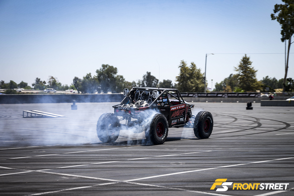 Cody Currie came blasting out and hit the jump in his Monster Energy Ultra 4 racer. Currie and two-time King of the Hammers Champion Loren Healy both showed the audience what four-wheel-drive burnouts look like.