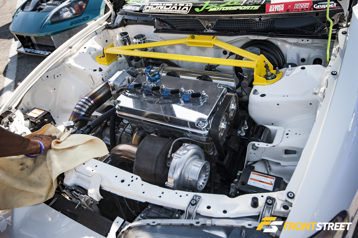 The only mishap in Top 8 competition came at the hand of Odi Bakchis, when he ran into the back of Deane’s Worthouse S15 Silvia during their first run. This wouldn’t normally be an issue, but in keeping with what seemed to be the theme of the night, that wasn’t the case. Both cars would be towed off the course with suspension damage. Since Odi was deemed to be at fault, Deane and his team were given 10 minutes to try to fix the car. He then was forced to use a competition timeout when he couldn’t make it back to the line in time, and when that expired the round was called in his favor without the two men having to drive their second bout.