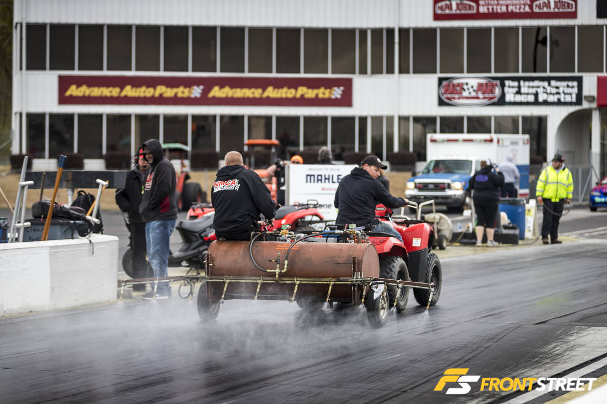 Having quickly become one of the most anticipated stops on the NMRA/NMCA calendar, the Atlanta Dragway facility has consecutively brought heated competition and falling records to the combined event battle. Last year the weather was just as unpredictable as the racing, with an earthquake and tornado being thrown into the mix. While attendees were fearful of similar shaky conditions this year, the cool, damp weather of the weekend held out long enough to complete the entire event.