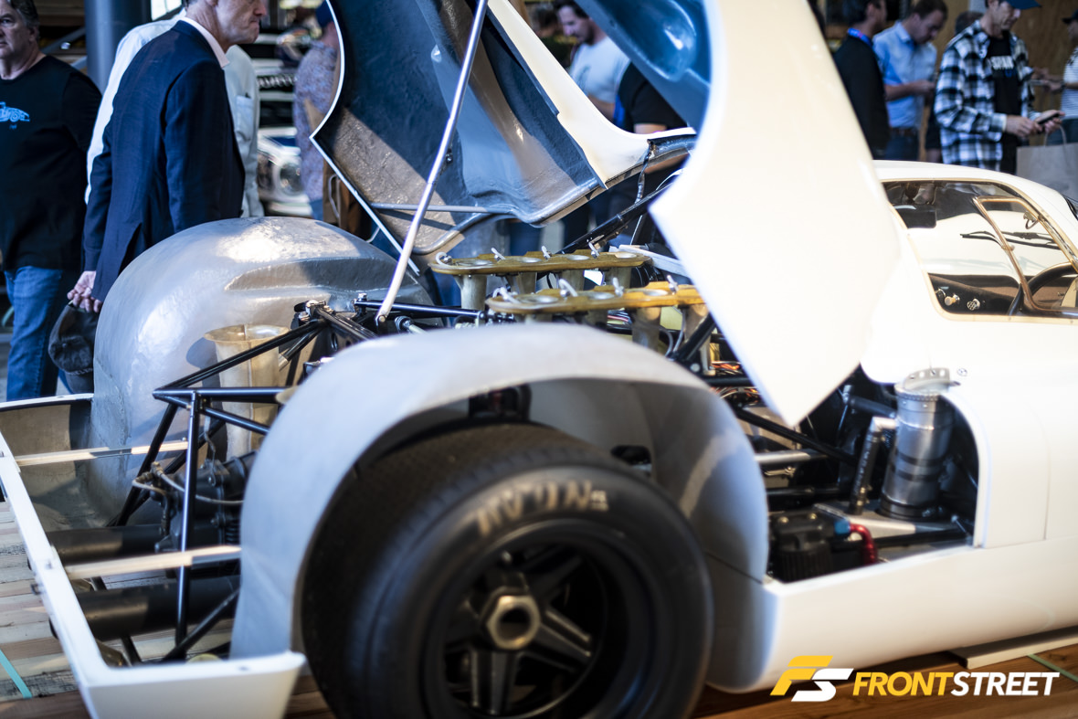At the exits to the main building were a few other cars showcased on lumber stages like the 908K. This Porsche Formula 1 car and Grand Prix winner is the Porsche 804 chassis 03, which was driven by Southern Californian Dan Gurney to victory. Dan unfortunately passed away last year, but his car taking center stage with his family in attendance was a lovely tribute to his legacy.