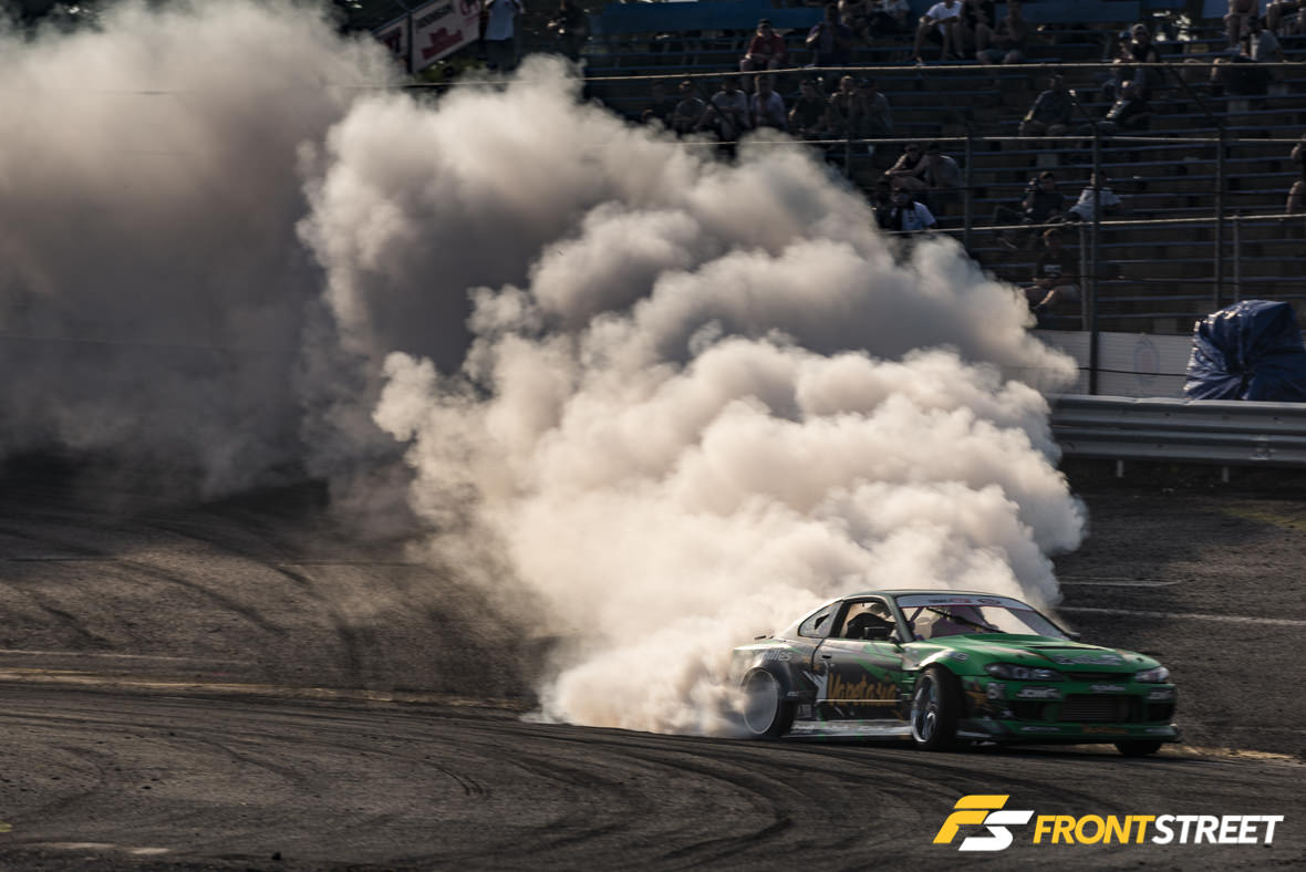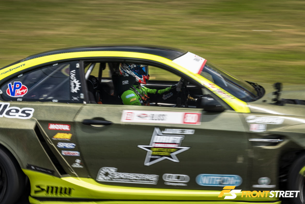 As fate would have it, once the competition’s match-ups were generated based on qualifying position, Kearney was placed against Wang. The twin green S15’s put on such a solid tandem performance together, it could have been mistaken for a drift demo. However due to Kearney’s nominal contact with the wall after the duo switched positions, the win was handed to Forrest Wang. Regardless, it was a terrific sight to watch two of the sport’s talented drivers duke it out in matching cars.
