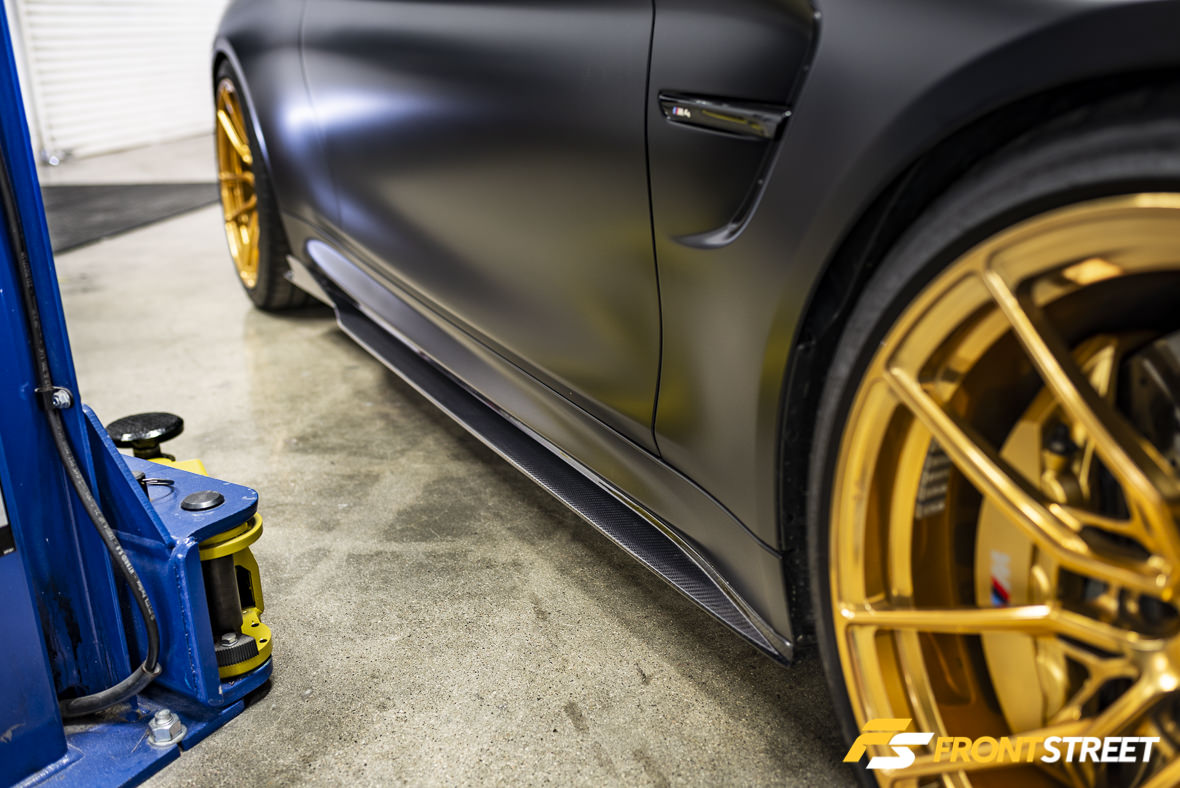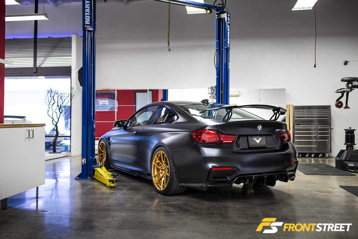 Rounding the corner we spotted the famous Vorsteiner M4 GTS demo car, fitted with the company’s full GTS-V aero program and its new gold VCS-002 Sport Forged wheels!
