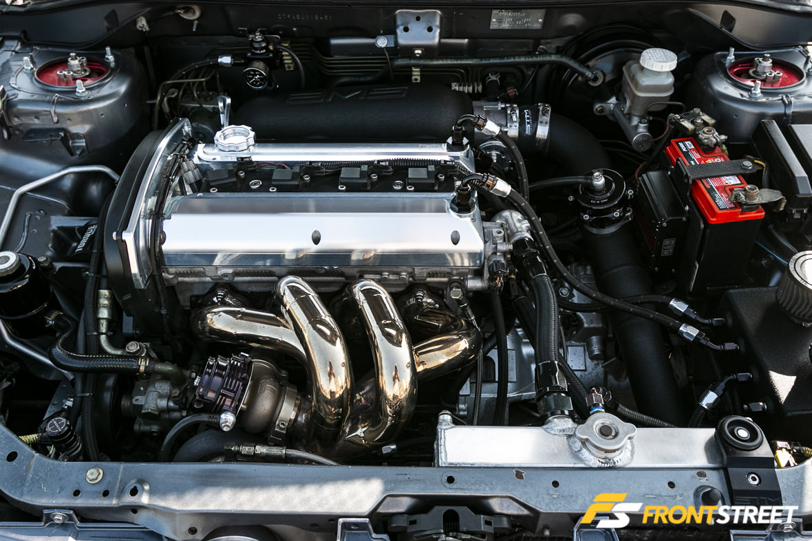 This machine produces serious power thanks in part to its custom-fabricated long-tube turbo exhaust manifold which locates a Garrett turbocharger just behind the front bumper.