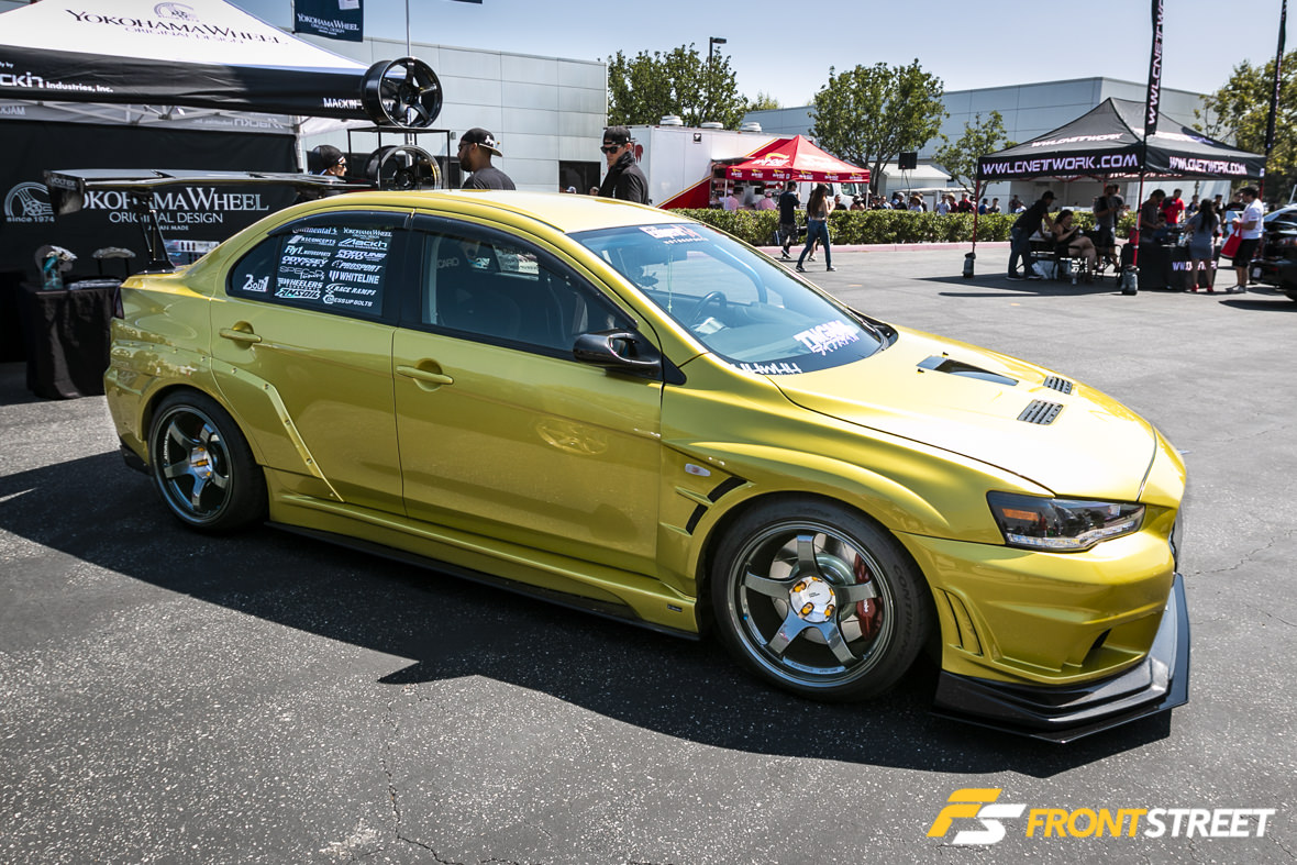 Sitting just adjacent to the dyno competition area was this wild EVO X. This former World Challenge GTS class competitor was owned and campaigned by GMG before being decommissioned and sold off to CSF CEO Ravi Dolwani, who commissioned MotoIQ Garage to rebuild the car to compete in various race series—time attack, drag racing, and high-speed events.