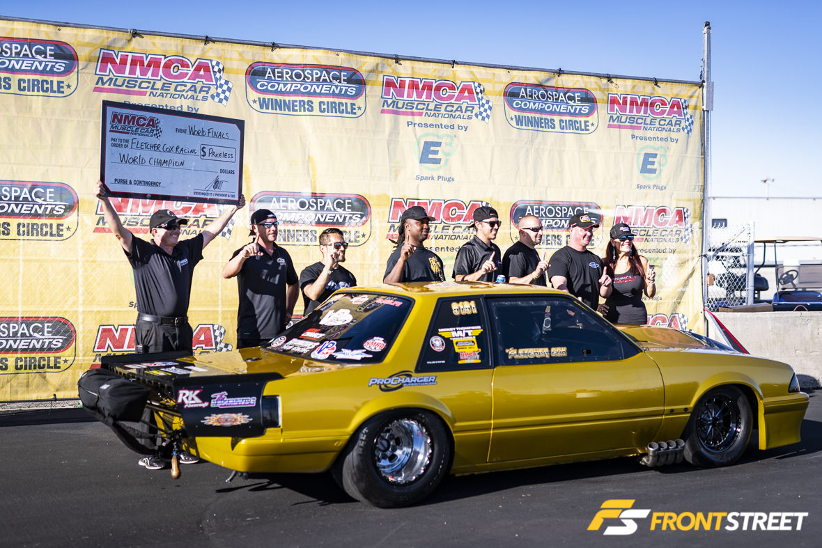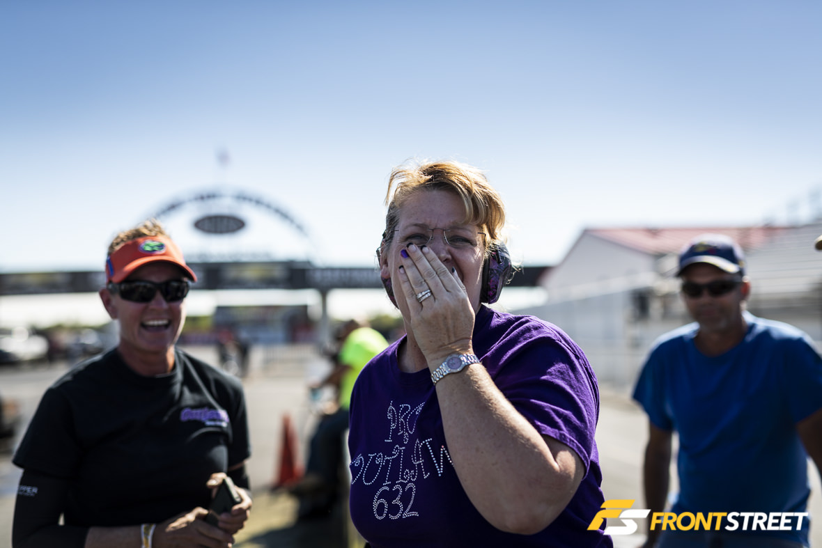 Lawrence’s closest competitor, Marty Stinnett, didn’t have the championship on his mind and only cared about winning at Indy—and he did. Marty’s season wasn’t without its ups and downs. At the second race of the year in Atlanta, the formerly matte black Fox Body hit the wall hard. This was followed by a downright heroic effort to get the car back together for Bowling Green the following month. What’s really disappointing for him is that if Marty hadn’t wrecked his car at the All-Star Nationals, he may have picked up more points to close the gap. Ultimately, he was just 260 points short of James and the Corvette. He was the best Radial Wars car this weekend, and found himself standing with a comically large check.