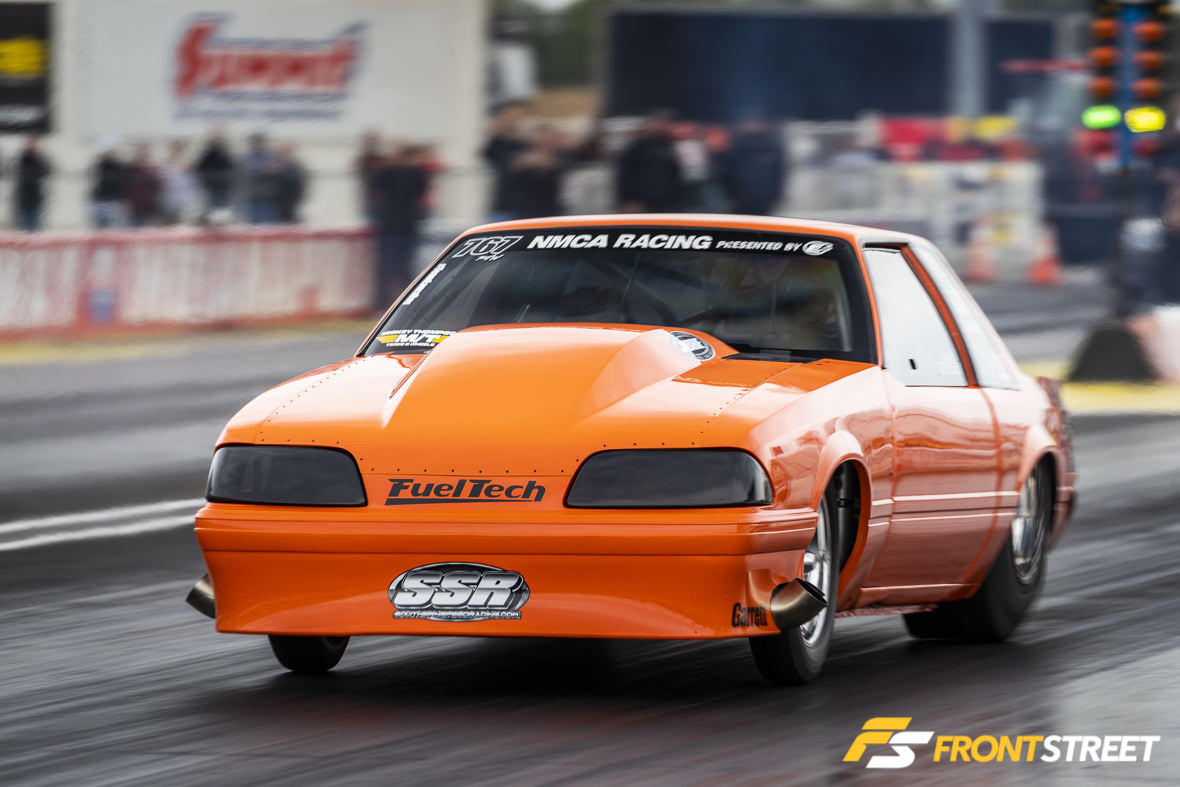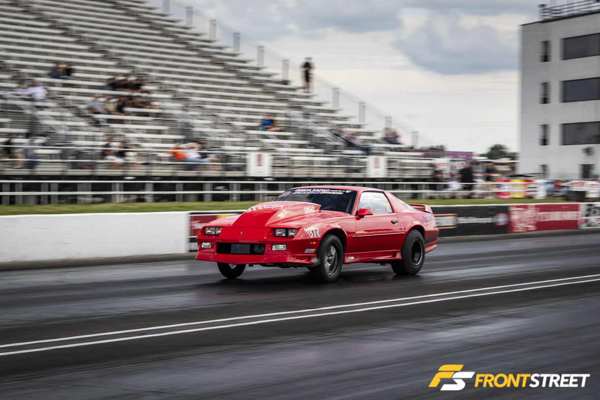 We saw another healthy field of cars in Edelbrock Xtreme Street, with a total of 18 racers rounding out the qualifying field. Coming into the race, points leaders Jessie Coulter and Tim Knieriem qualified at two and one, respectively, but they wouldn’t trade places on the leaderboard after all the tire smoke settled. Knieriem’s nitrous-powered Mustang couldn’t outlast Jessie’s turbocharged ‘91 Camaro who also fell in the round following Tim’s departure. This left Bill Trovato’s 2013 Camaro to duke it out with Lou Iacopetti’s Fox Body hatch (seen above) in the final round. Lou would ultimately raise to the top with a 7.757 to Trovato’s 4.792.