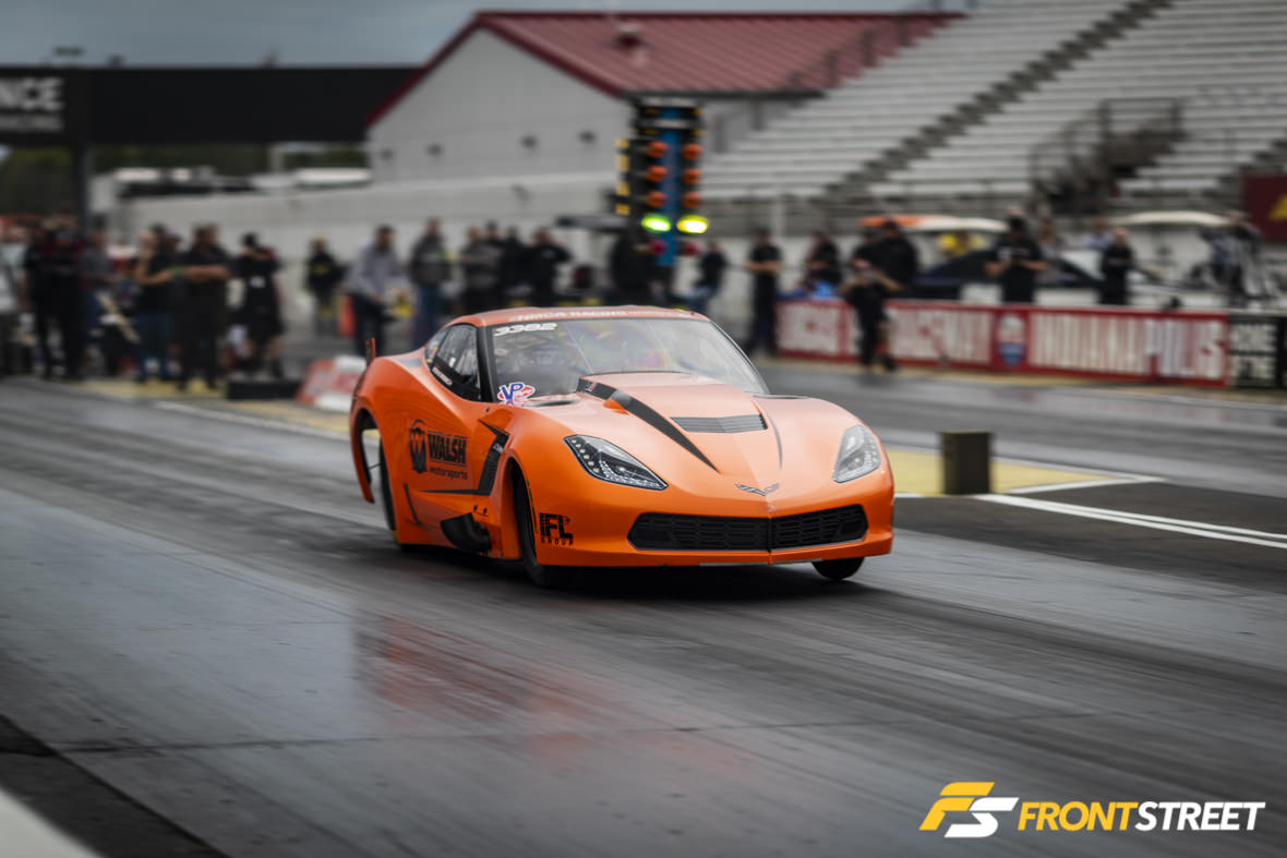 The VP Racing Fuels Pro Mod Championship was a hotly contested class this year. The two favored drivers were points leader Jason Hamstra in his ruby red supercharged Camaro and Don Walsh Jr. in his Garrett-turbocharged orange Stingray Corvette. In our last installment from Summit Motorsports Park, both drivers made their way to the final elimination round, but Walsh had to forfeit the race due to a transmission issue on his previous pass, losing crucial points in the process. Not one to give up, the multi-time former NMRA Pro 5.0 champion and his team spent more time at the track between races to work out any gremlins the ‘Vette may have had in store for them at Indy. He explained to us that once again his transmission failed late in the weekend while making runs at Summit Shakedown, held the weekend prior to the NMCA Finals.